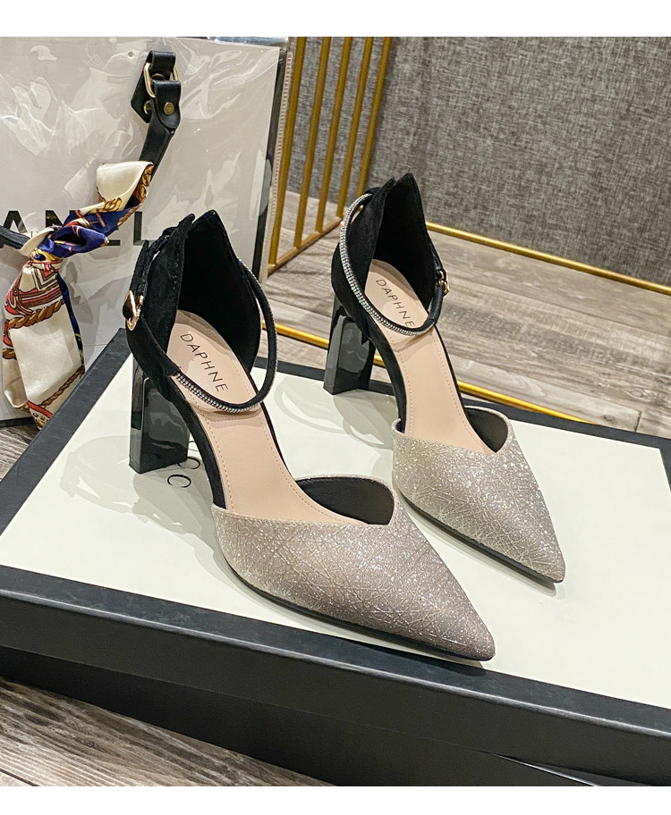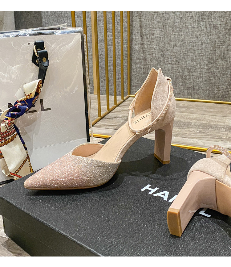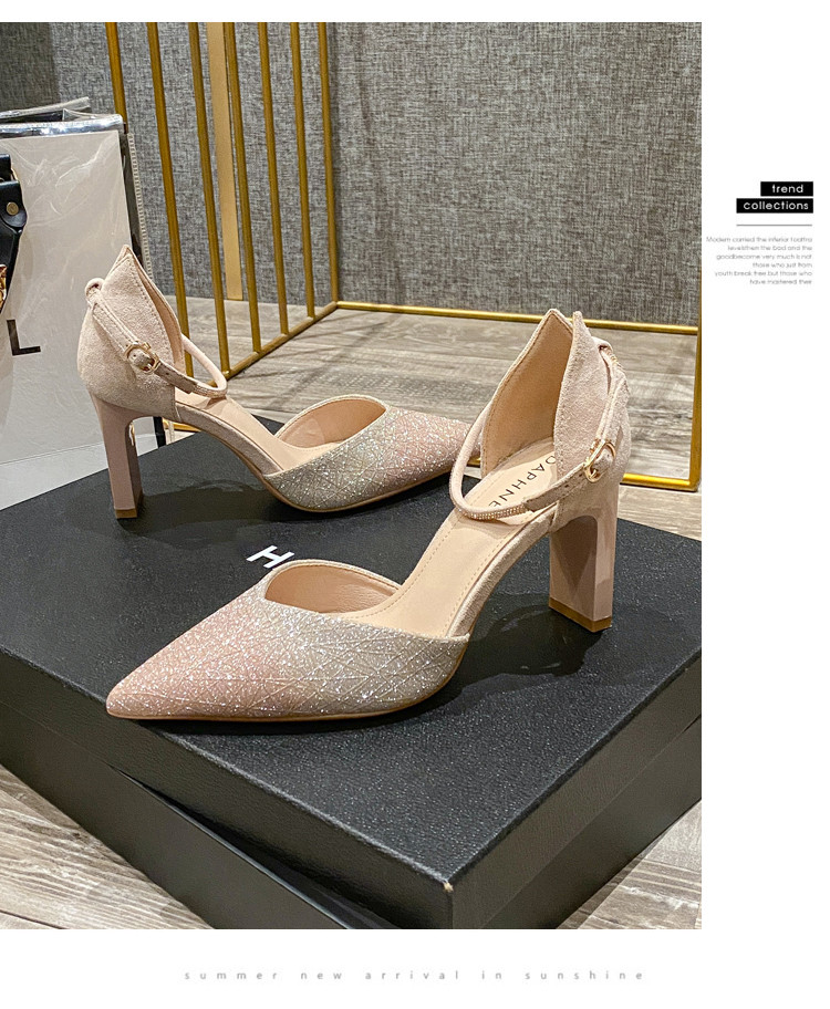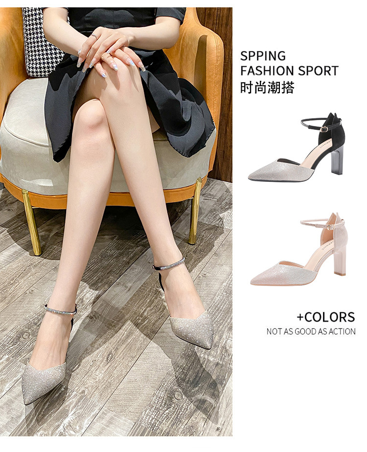 商品名称:尖头粗跟高跟鞋女春夏款女鞋2025法式轻奢甜美伴娘礼服单鞋女 075863