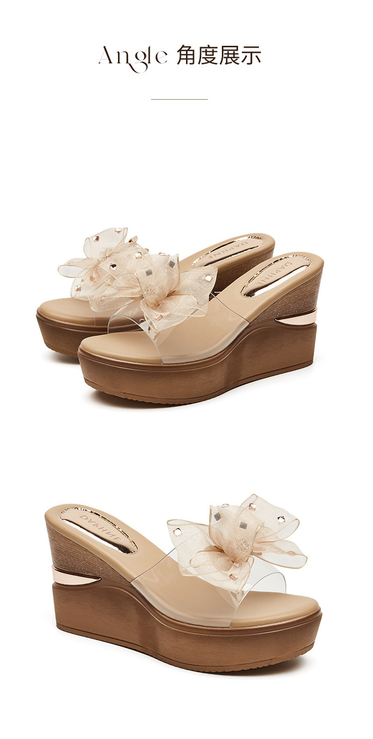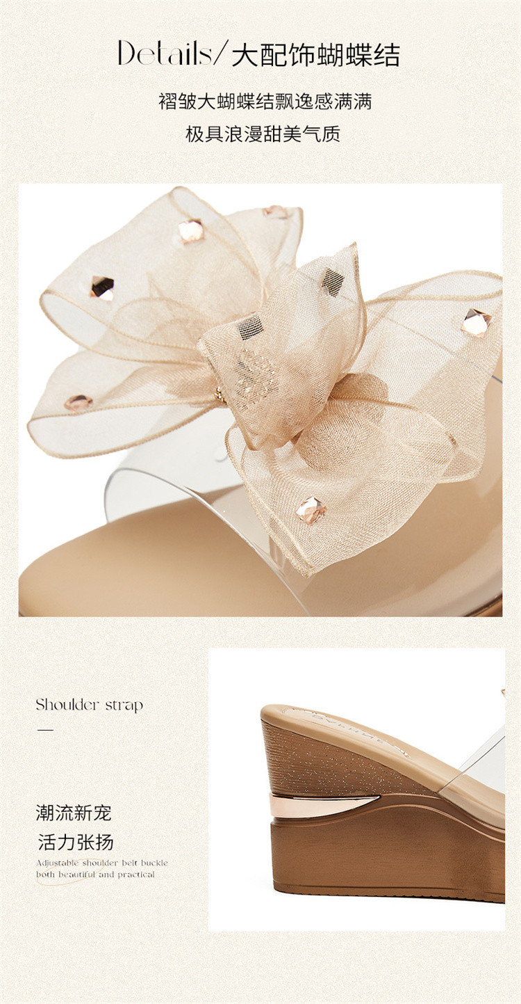 夏季透明度假风拖鞋潮流时尚外穿拖鞋小个子增高坡跟拖鞋高跟鞋 067479