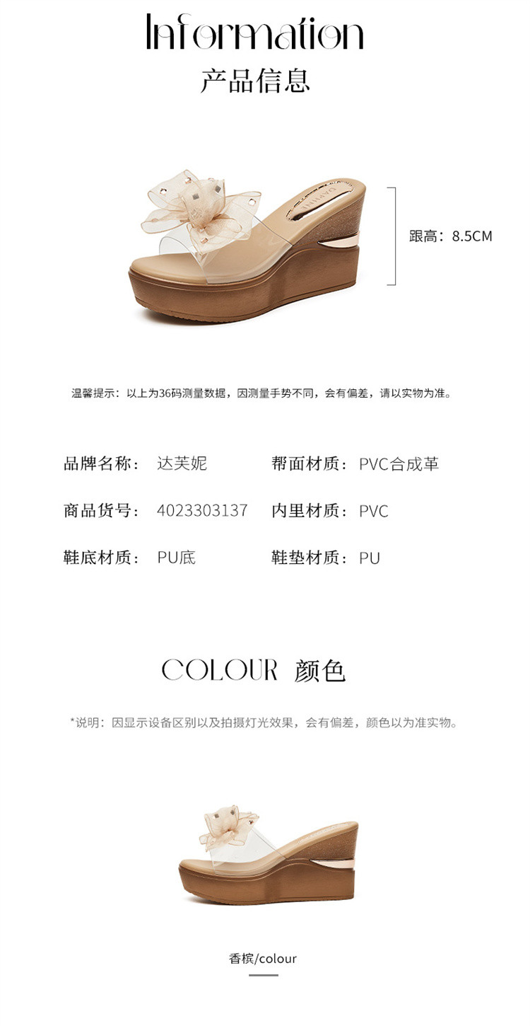 商品名称:夏季透明度假风拖鞋潮流时尚外穿拖鞋小个子增高坡跟拖鞋高跟鞋 067479