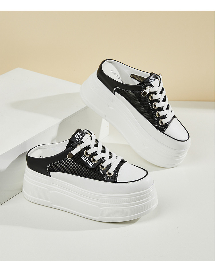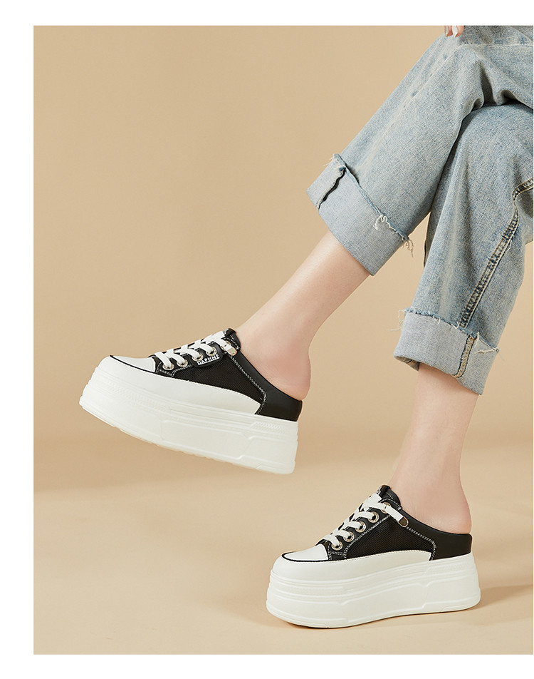 【热卖爆款】夏季小白鞋女内增高厚底半拖鞋休闲鞋时尚百搭女鞋 017943