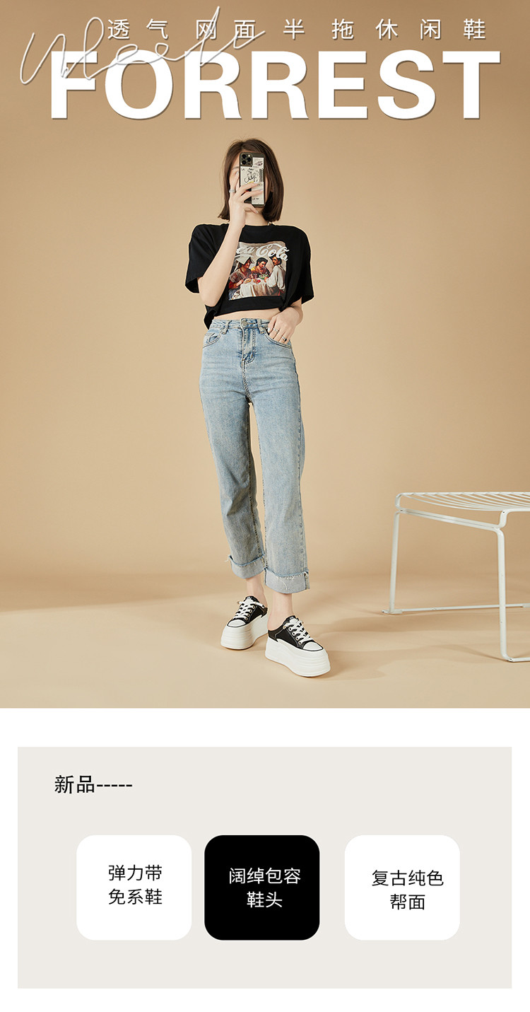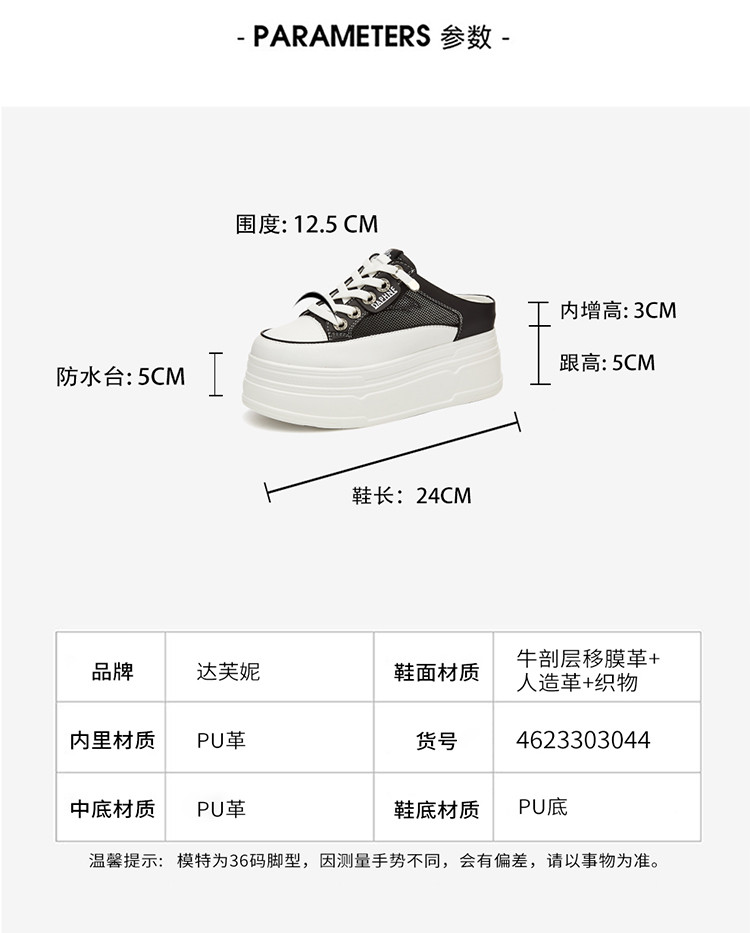 商品名称:【热卖爆款】夏季小白鞋女内增高厚底半拖鞋休闲鞋时尚百搭女鞋 017943