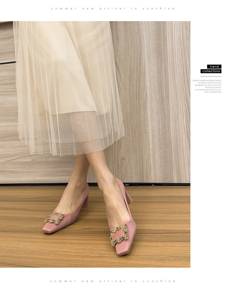 方头粗跟高跟鞋女25新春季气质女神范配裙子时尚水钻通勤单鞋女 006935