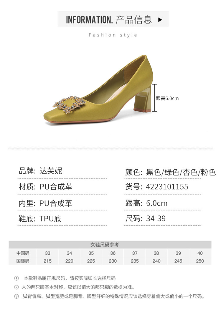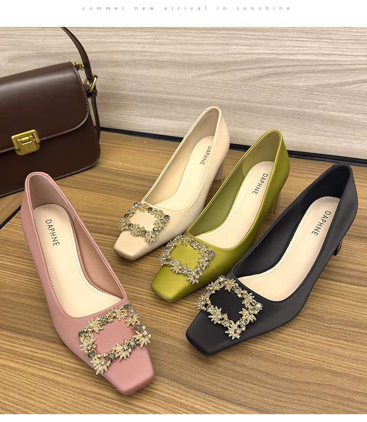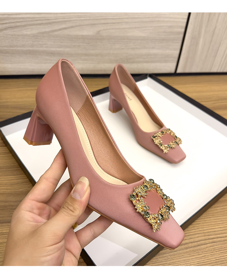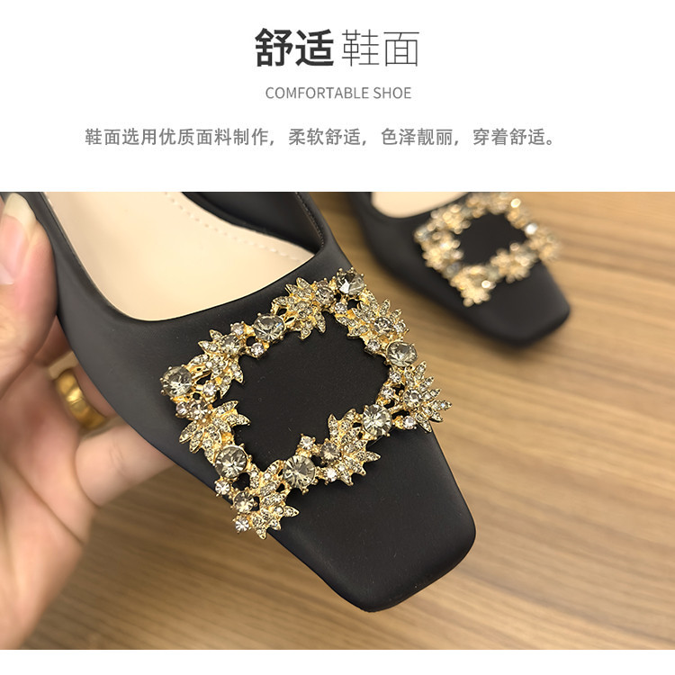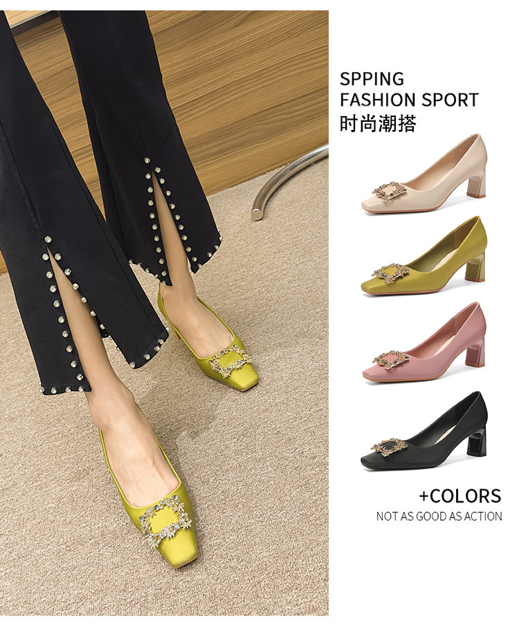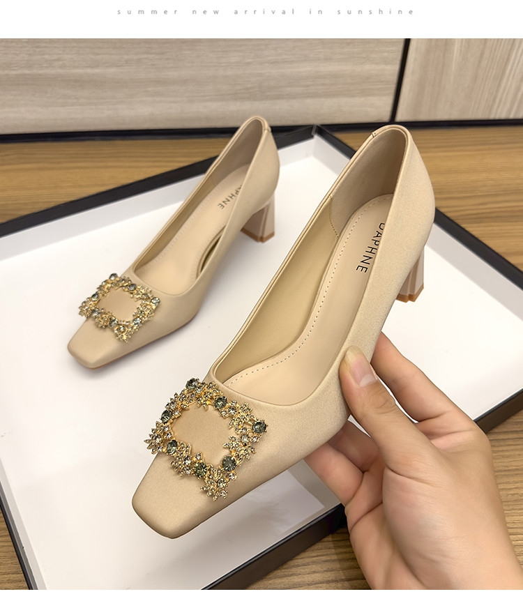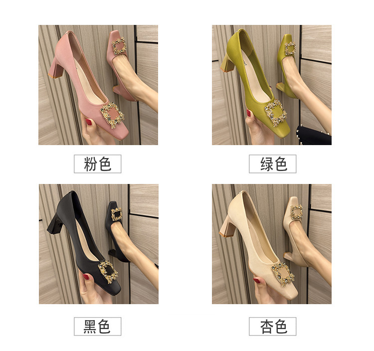 商品名称:方头粗跟高跟鞋女25新春季气质女神范配裙子时尚水钻通勤单鞋女 006935