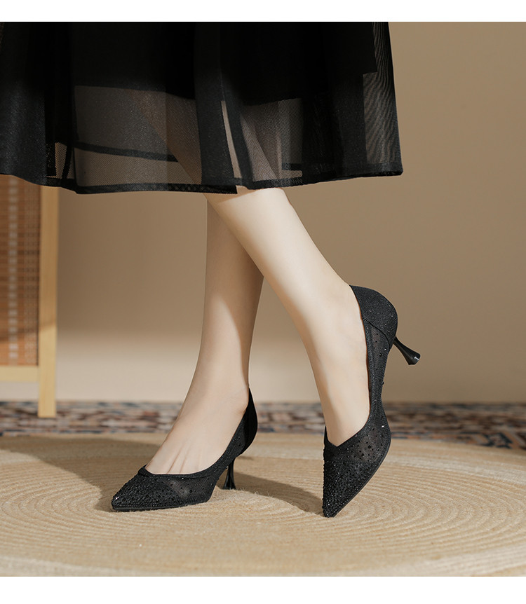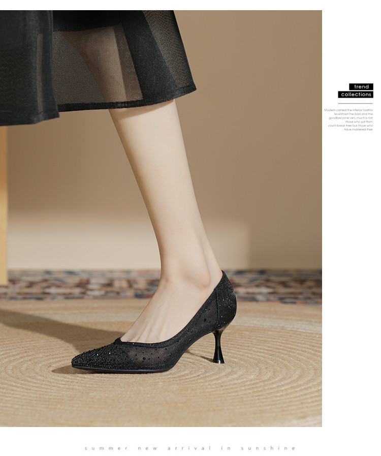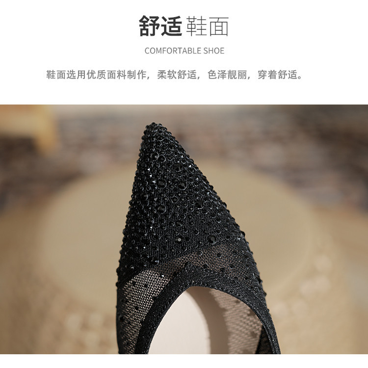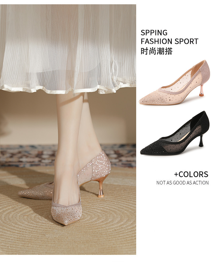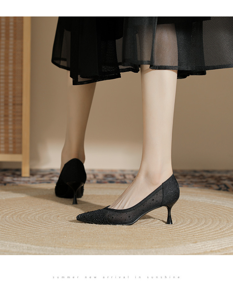 商品名称:细跟高跟鞋女2025新款春夏网纱透气仙女风配裙水钻尖头单鞋女 498711