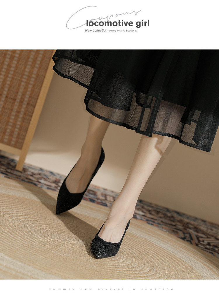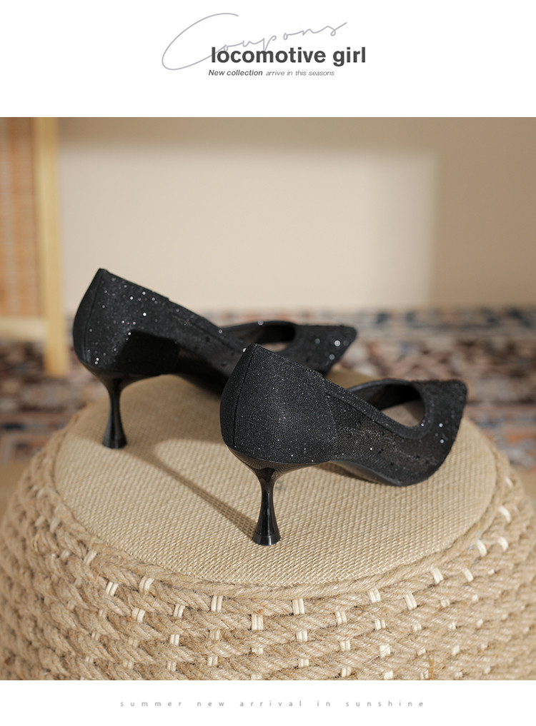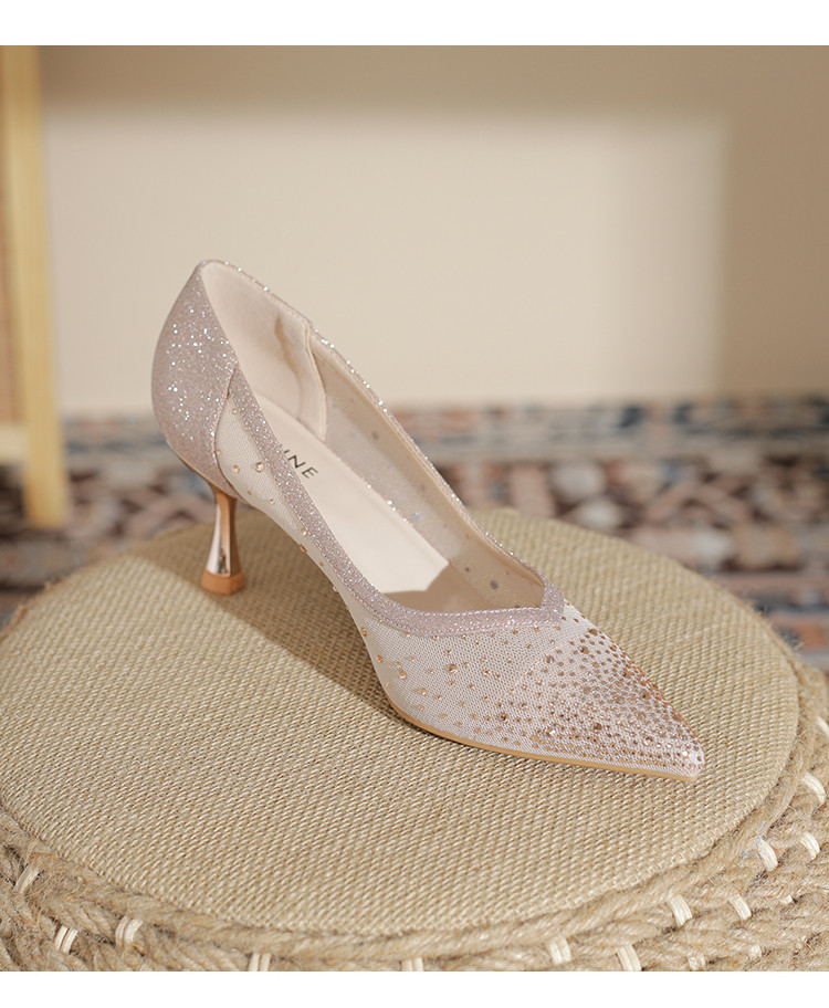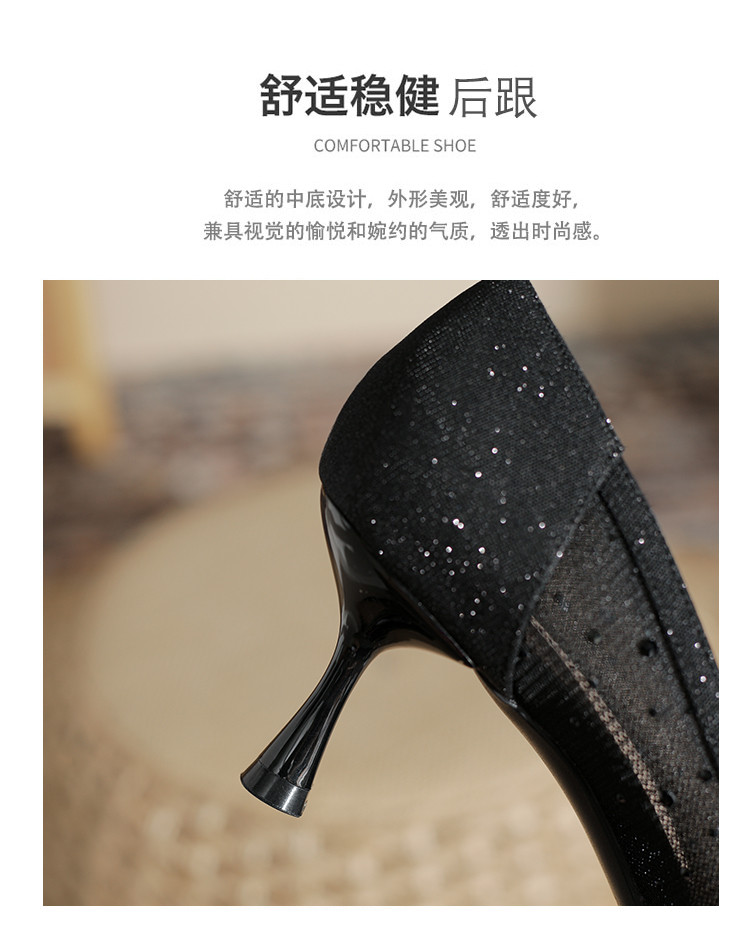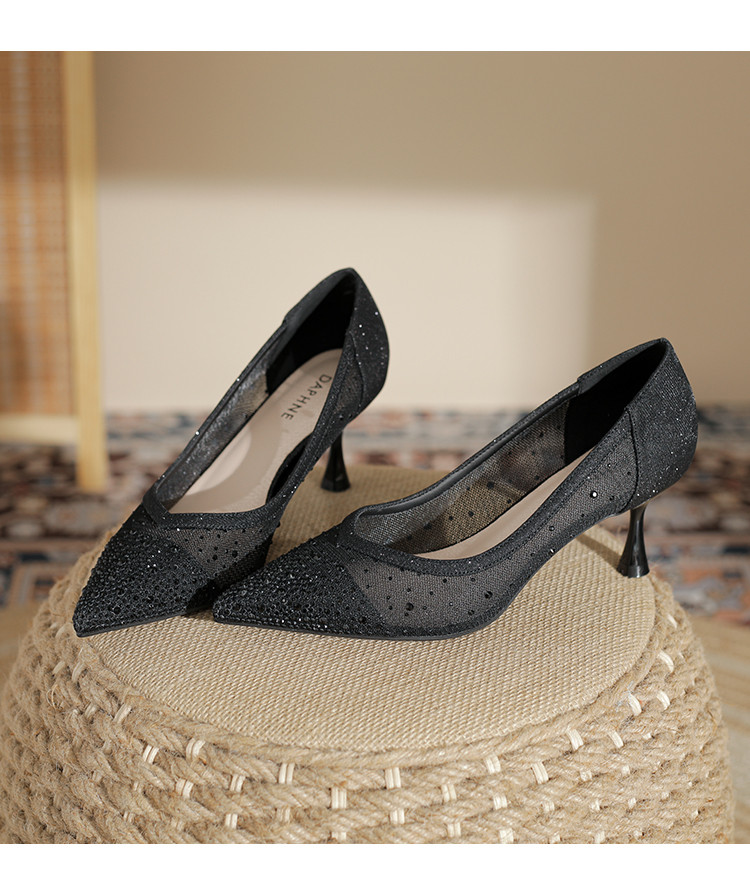商品名称:细跟高跟鞋女2025新款春夏网纱透气仙女风配裙水钻尖头单鞋女 498711