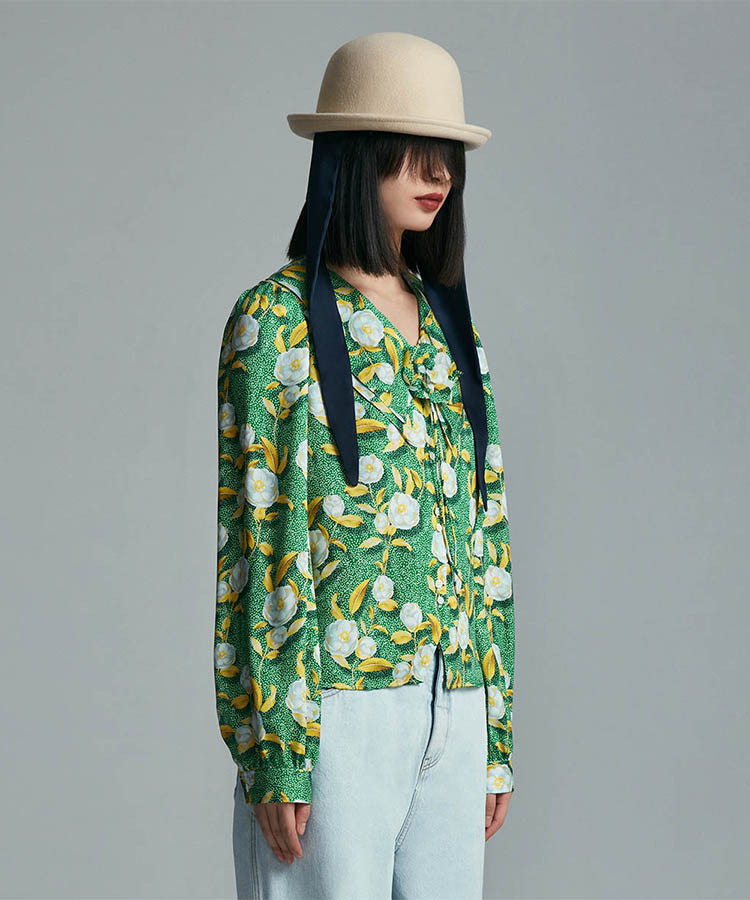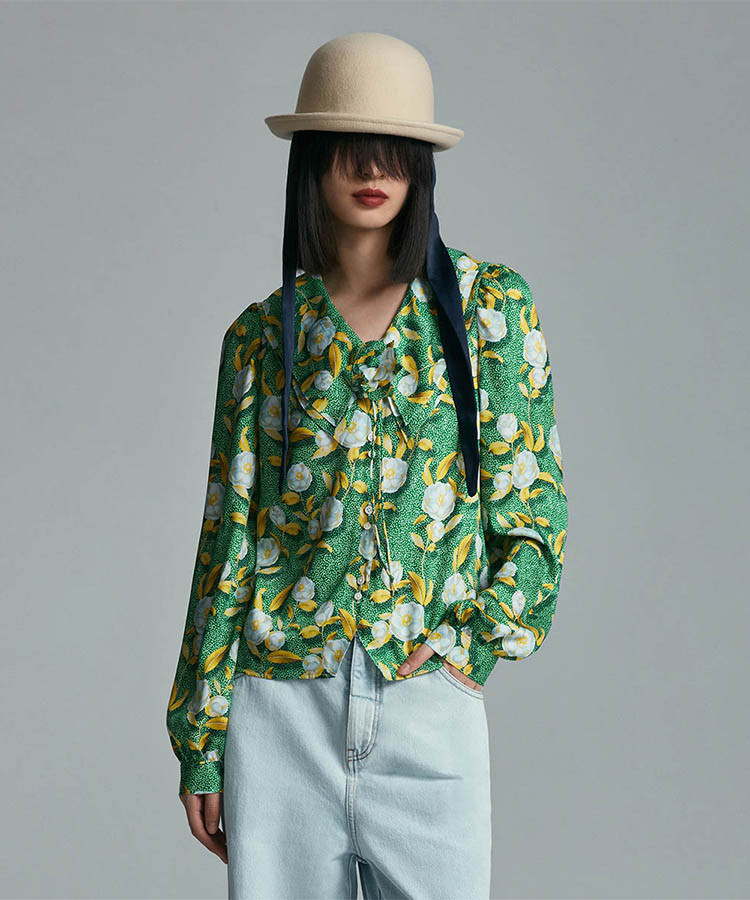 商品名称:PORTS PURE宝姿春夏小清新印花女装长袖衬衫 675018
