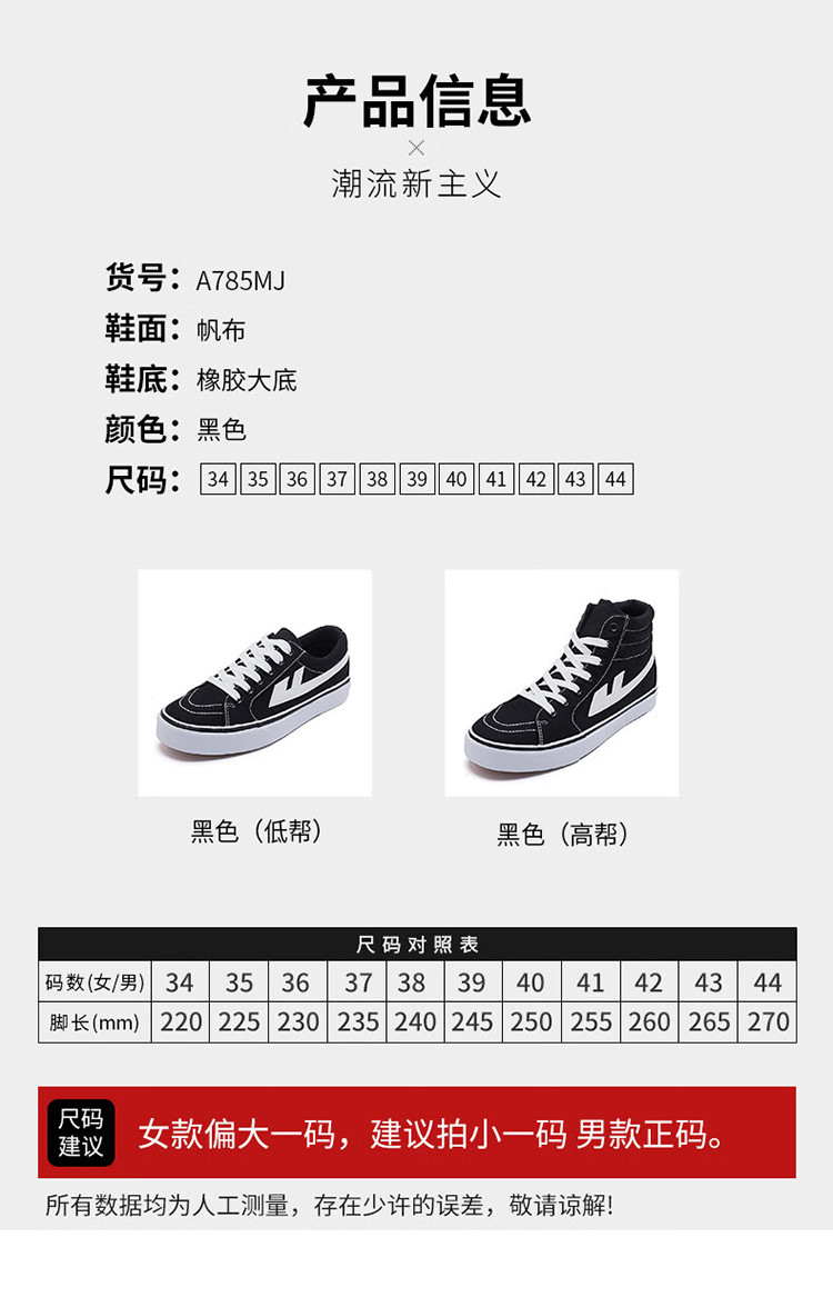 商品名称:【断码特卖】帆布鞋男女百搭休闲鞋情侣板鞋滑板鞋女鞋运动男鞋 809093