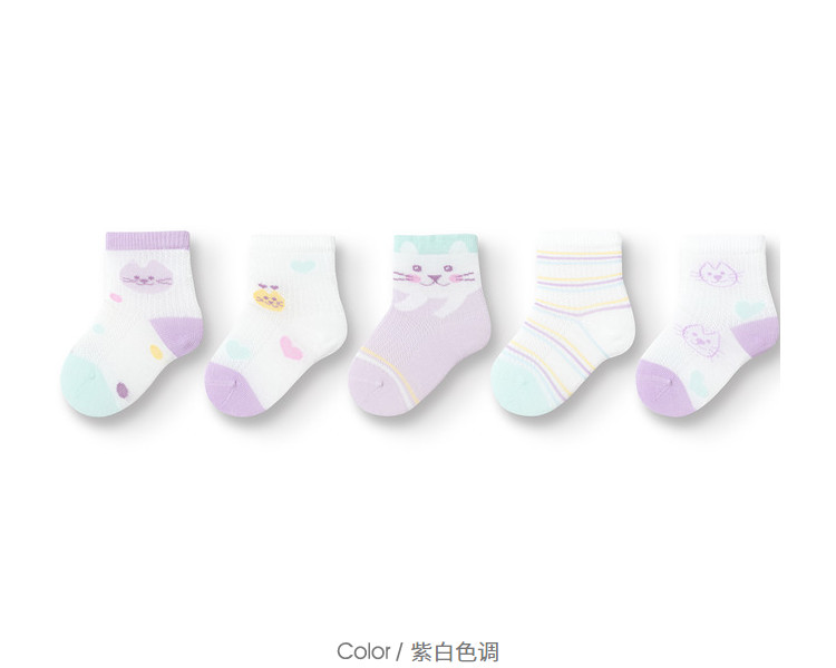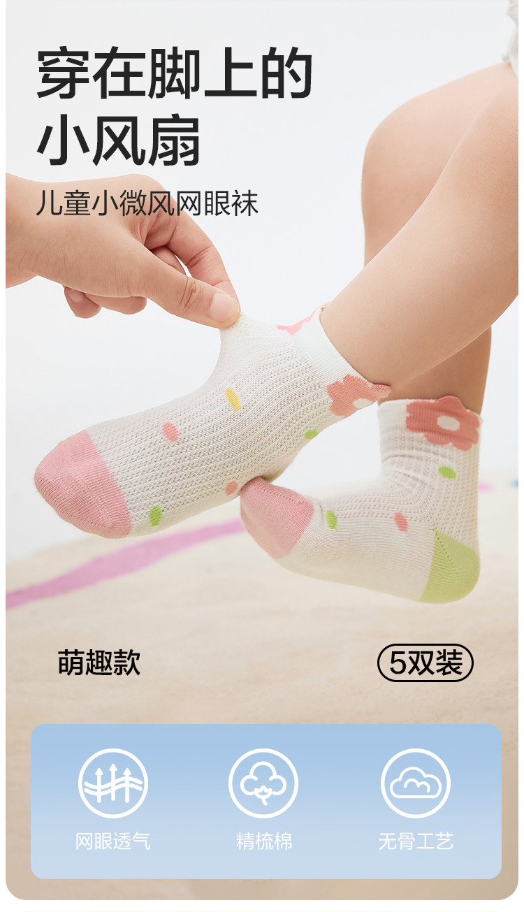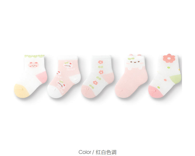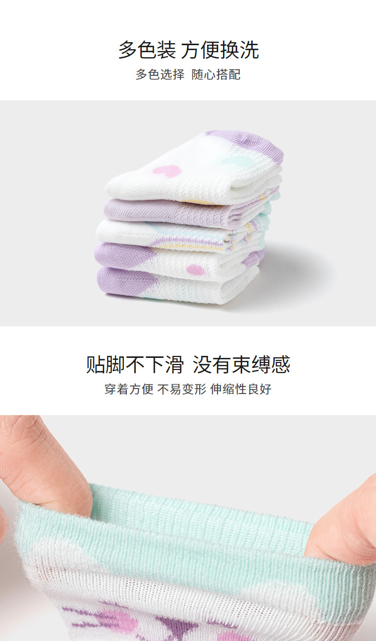 五双装儿童袜子婴幼儿夏季薄款男童女童新生儿宝宝无骨短袜弹力 261381