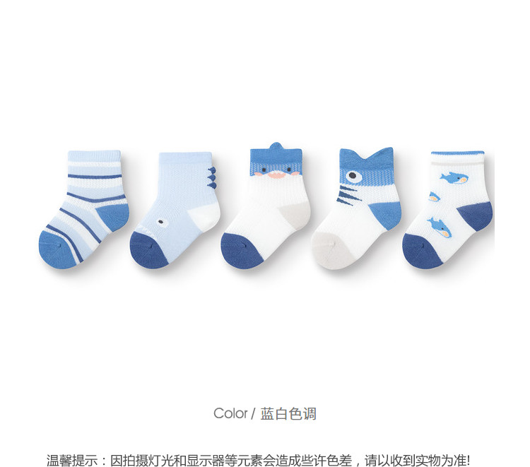 商品名称:五双装儿童袜子婴幼儿夏季薄款男童女童新生儿宝宝无骨短袜弹力 261381