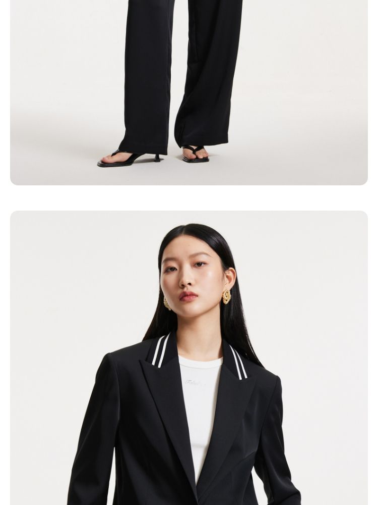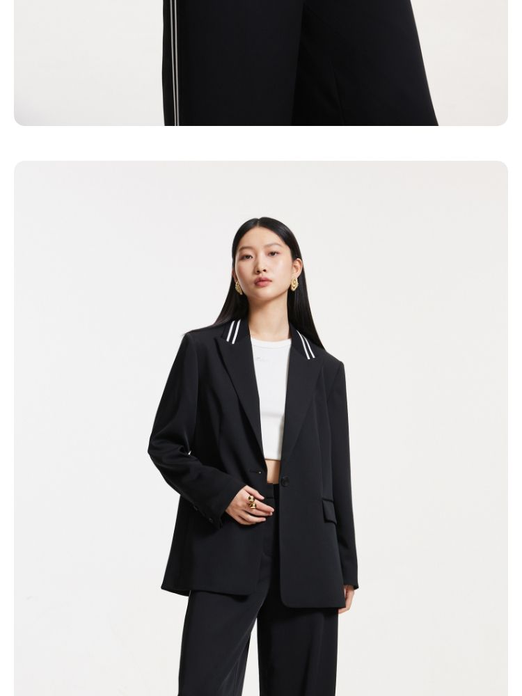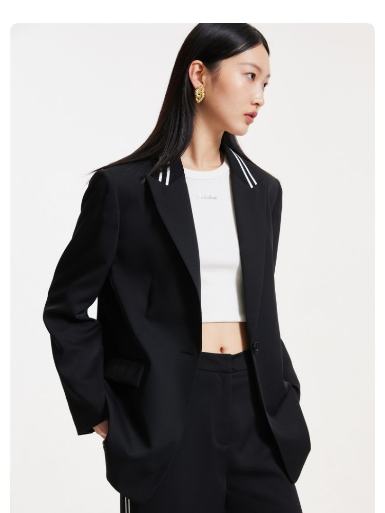 【一粒扣】2024春秋款宽松廓形撞色条纹学院风西装外套女 291857
