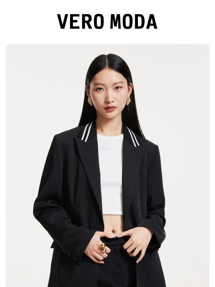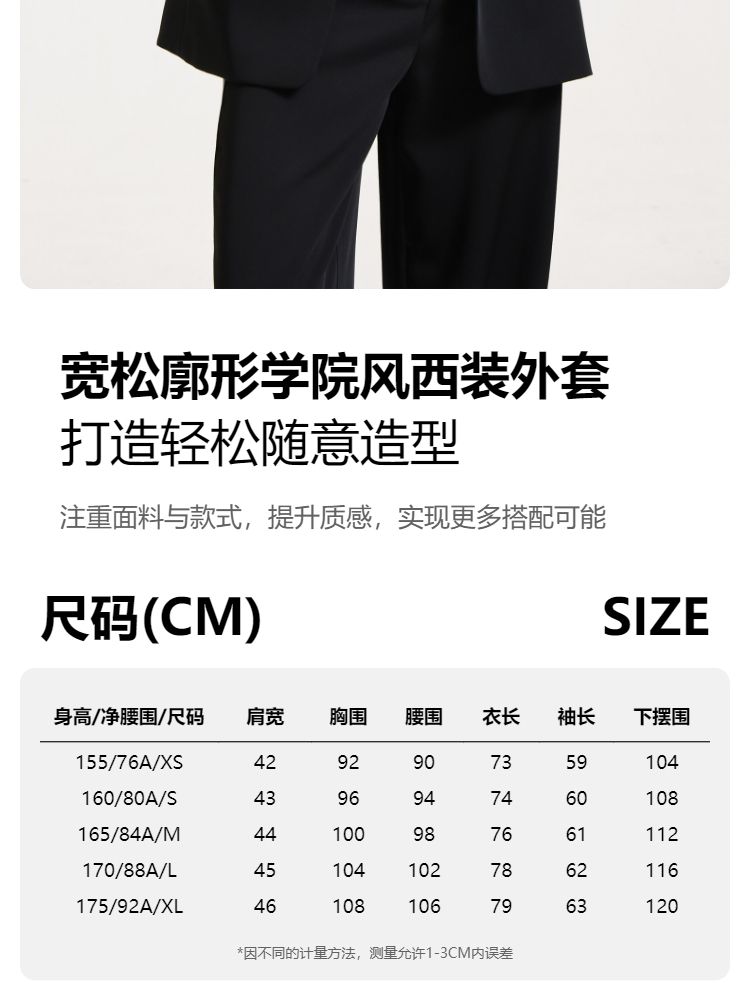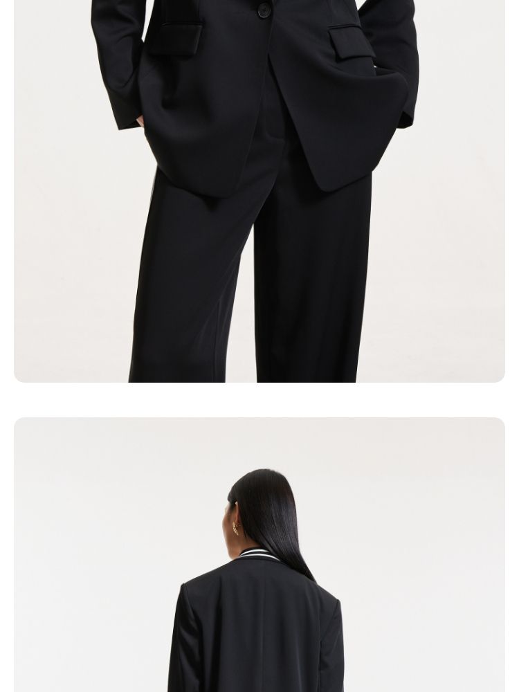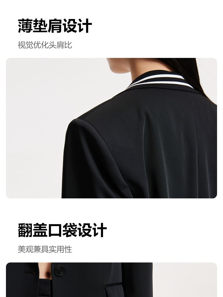 商品名称:【一粒扣】2024春秋款宽松廓形撞色条纹学院风西装外套女 291857