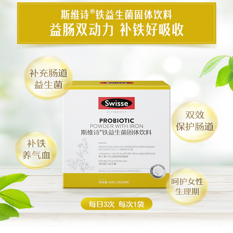 商品名称:【国内发货】Swisse/斯维诗 铁益生菌固体饮料(20条/盒)