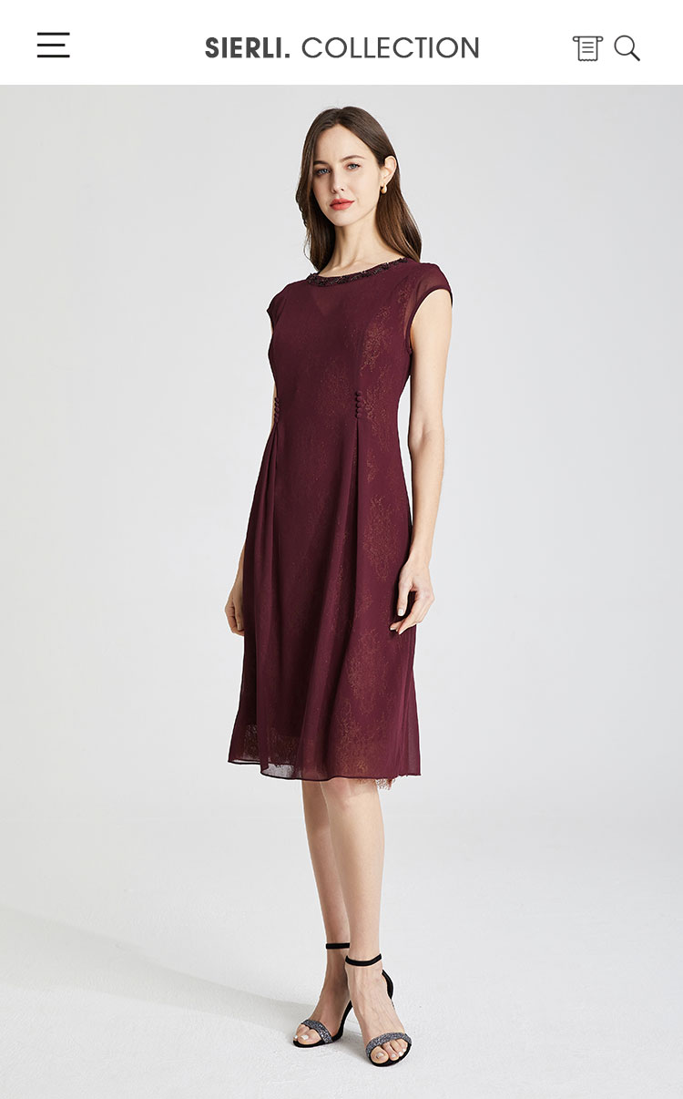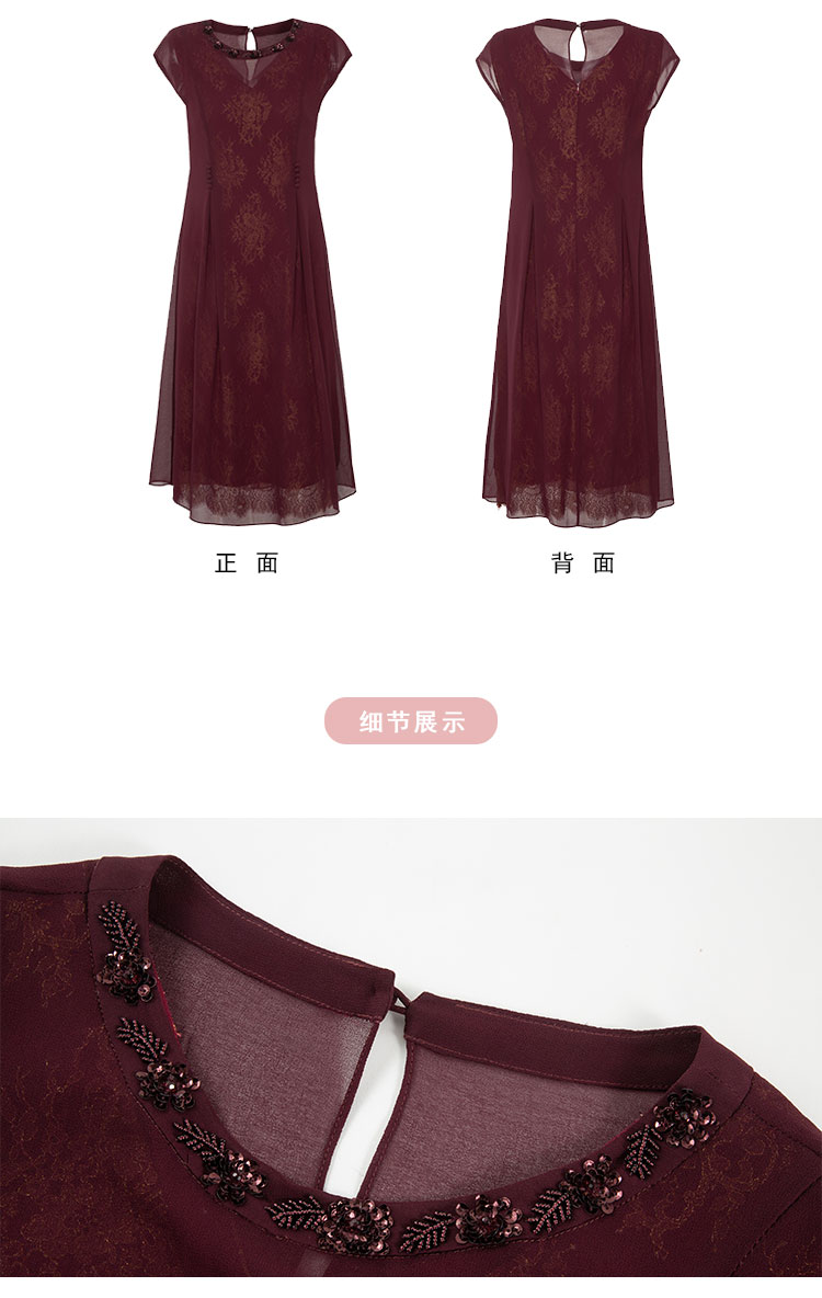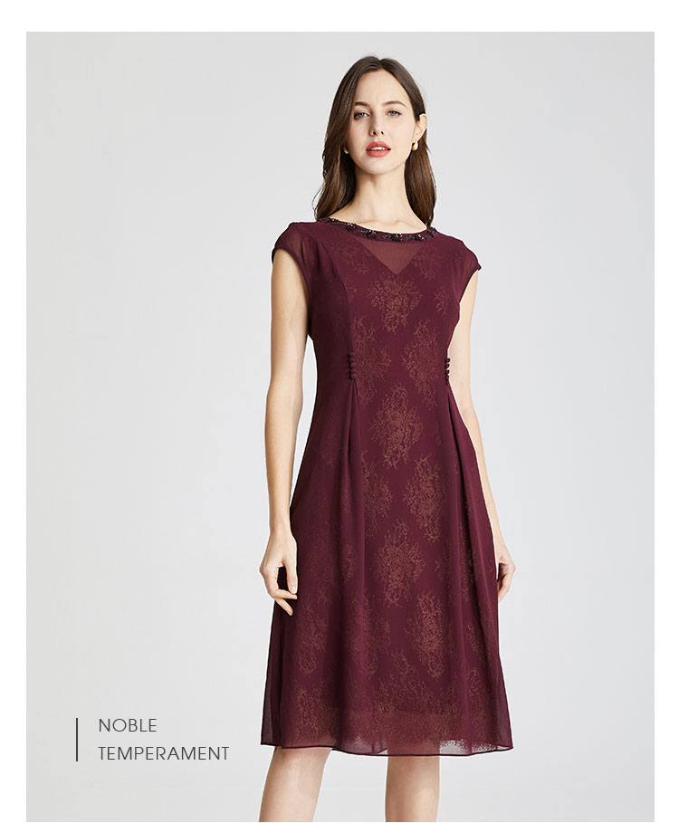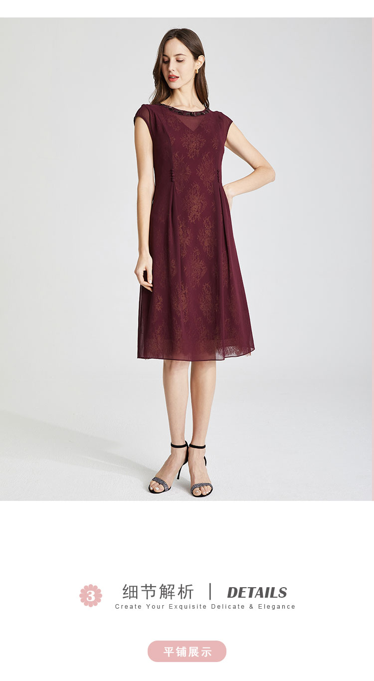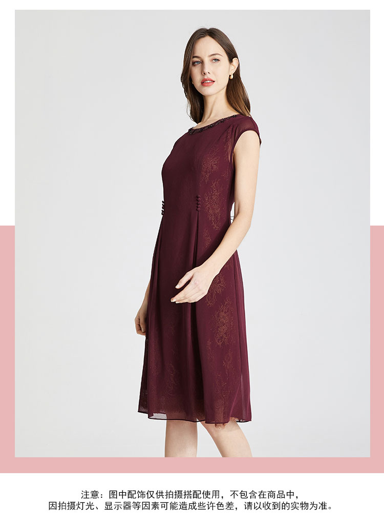 商品名称:夏季领口钉珠高级感收腰显瘦小A摆优雅气质连衣裙 444191