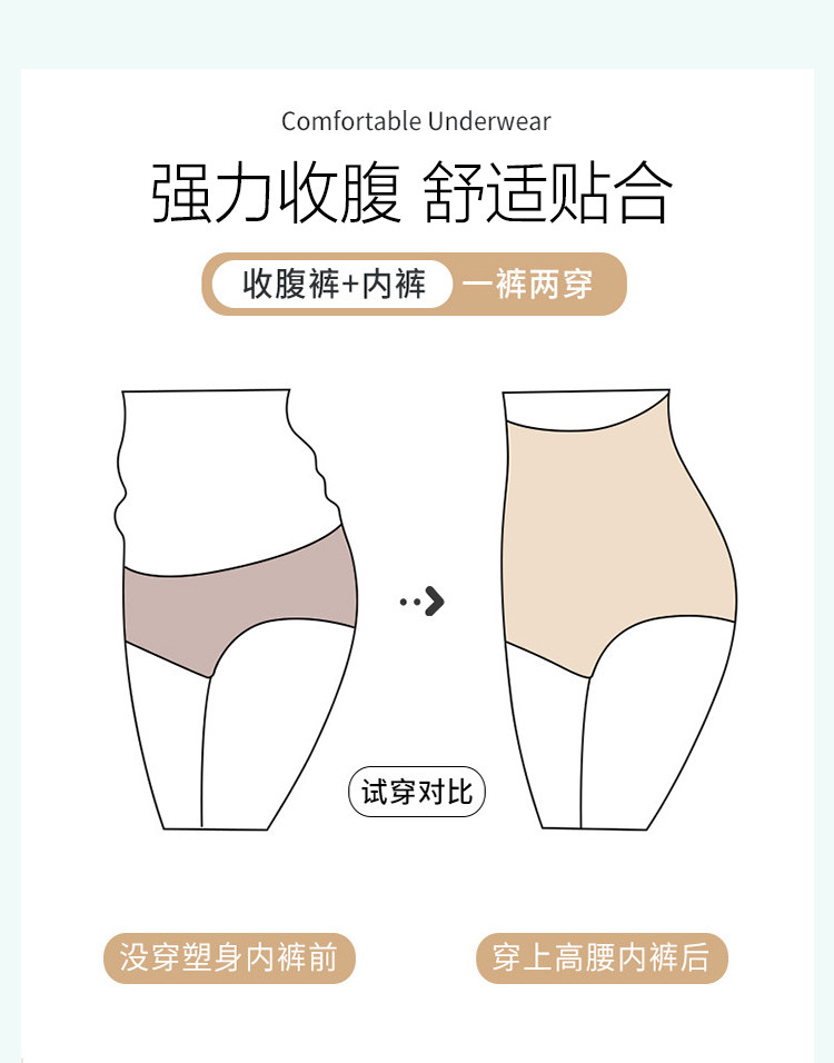 商品名称:【舒适冰丝 高腰收腹包臀】内裤女超薄柔软亲肤高弹三角女士内裤 499102