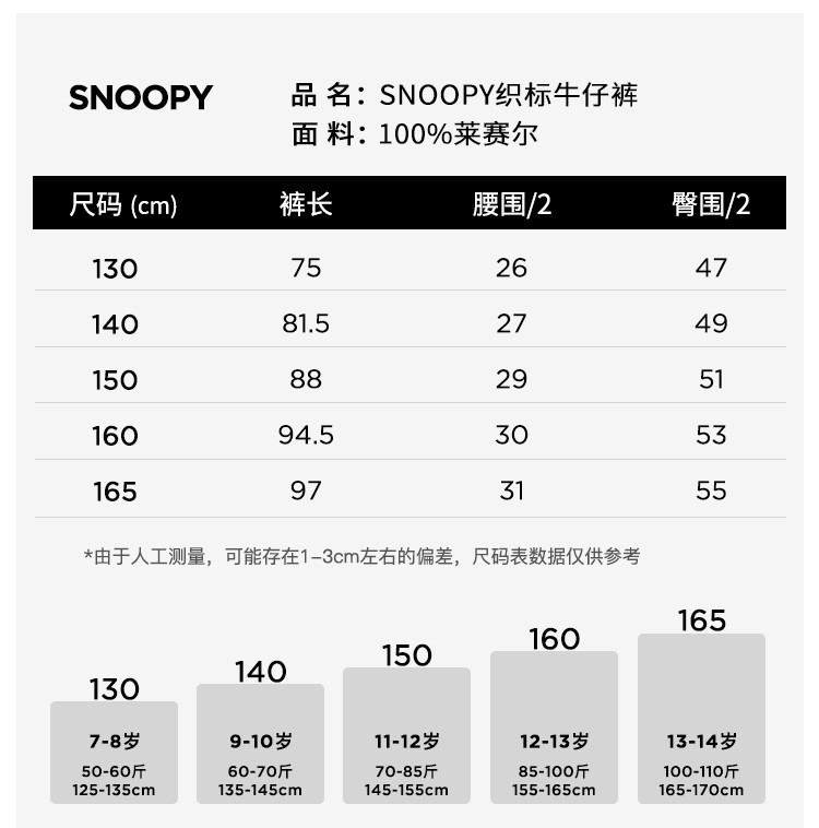 | 165 | 160-165 | 32 | 96.5 | 55 | 10-12岁 | 165/66 |