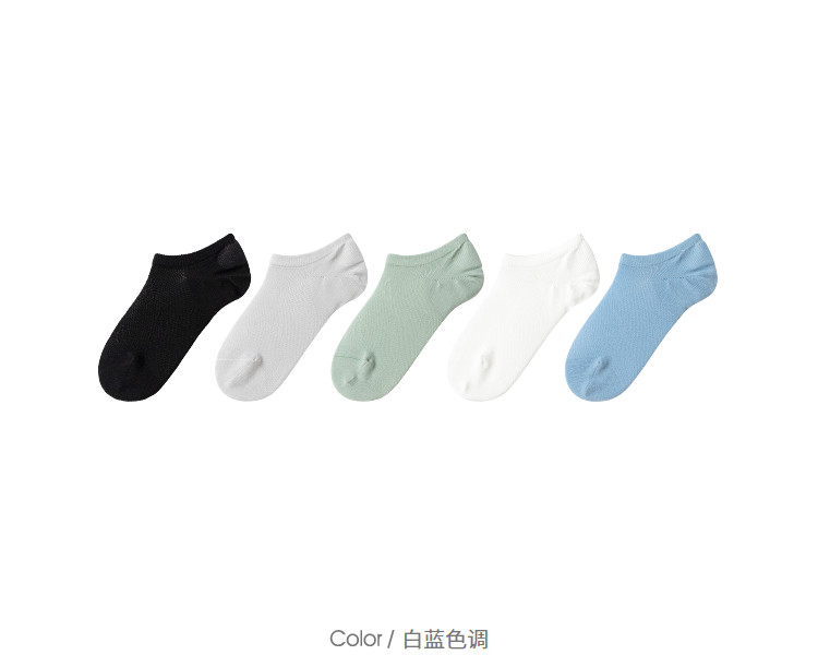 商品名称:薄荷纤维儿童船袜春秋网眼袜薄款透气男童女童短袜简约净色五双装 007941