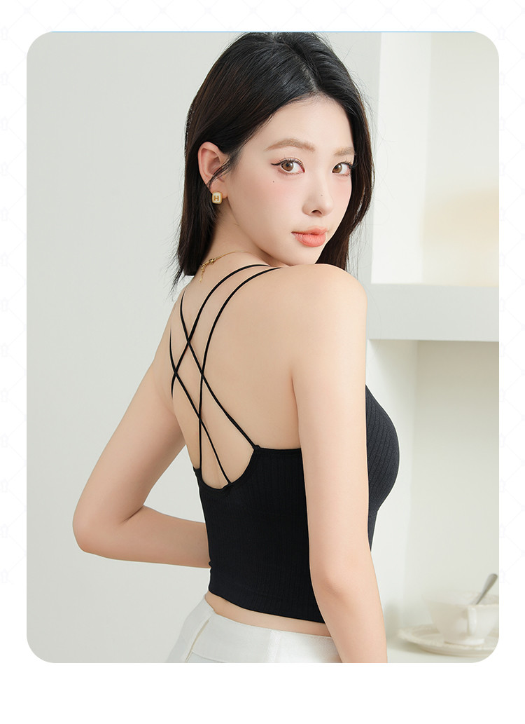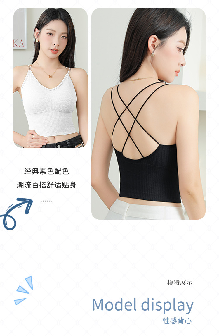 商品名称:【带胸垫不跑杯】夏季薄款内衣女后背交叉吊带美背内衣女外穿内搭 396619