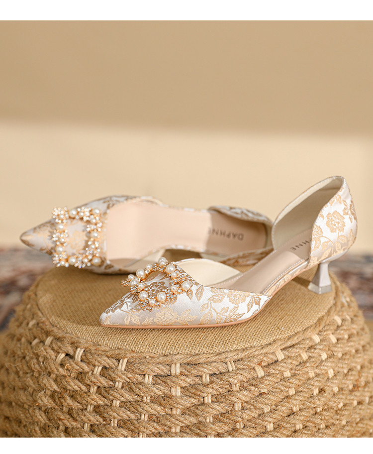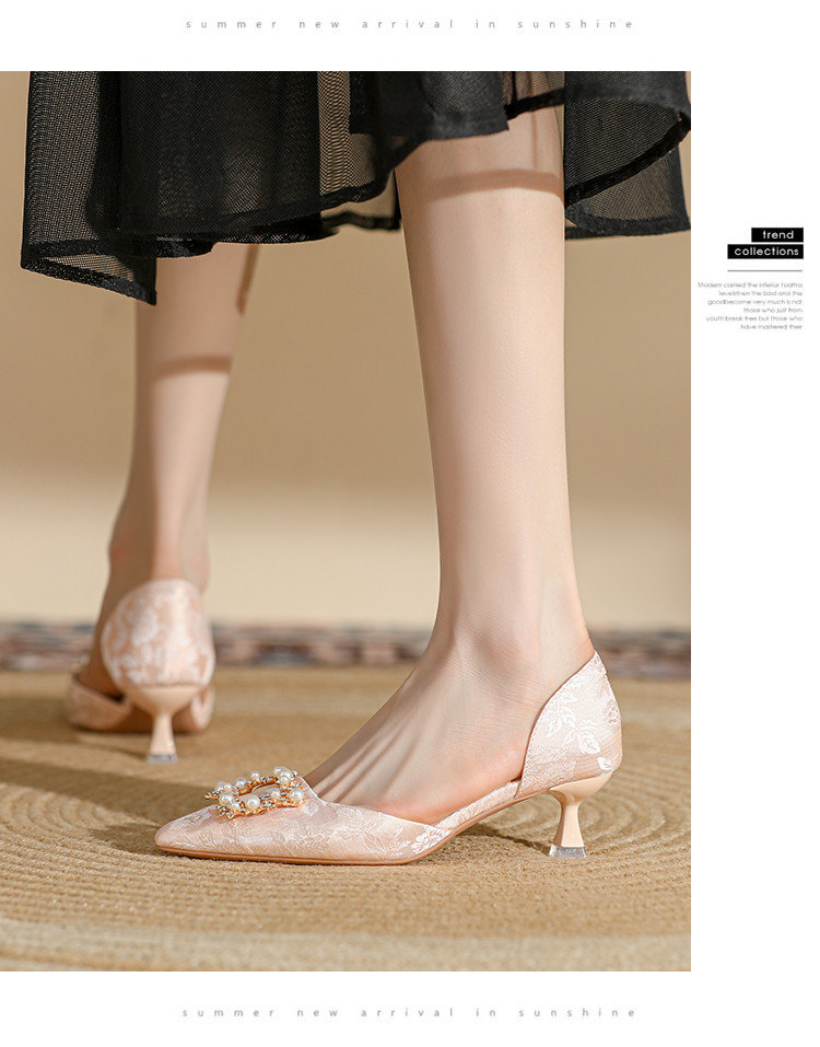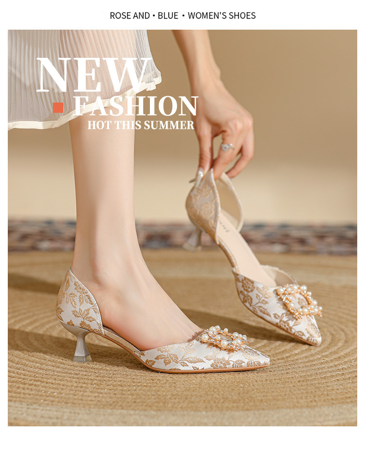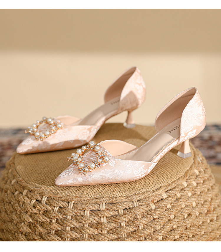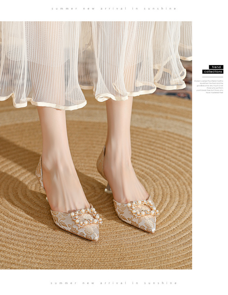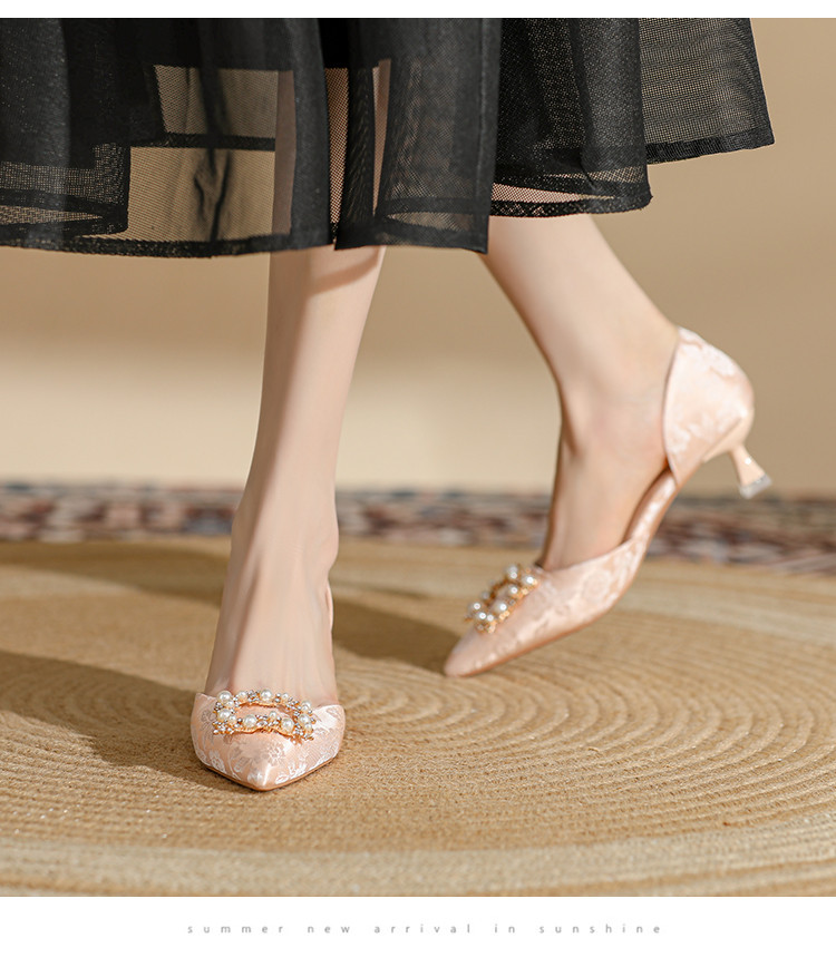 【水钻方扣】高跟鞋女2025新款时尚尖头女单鞋浅口细跟女单鞋 412119