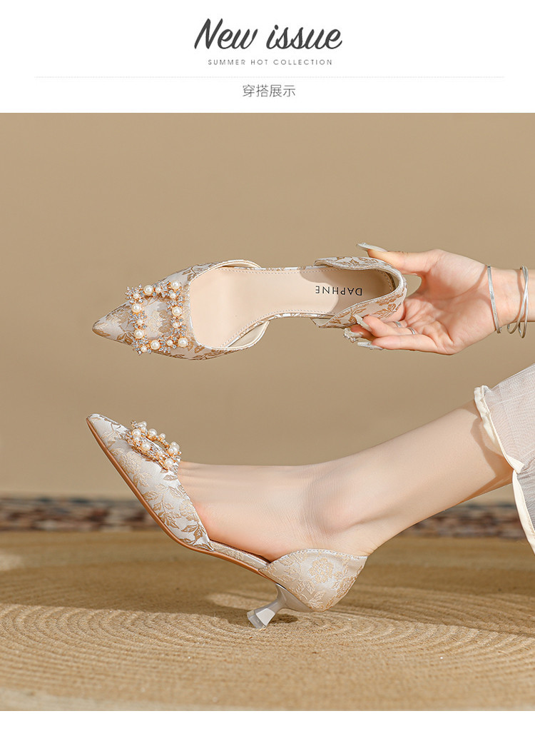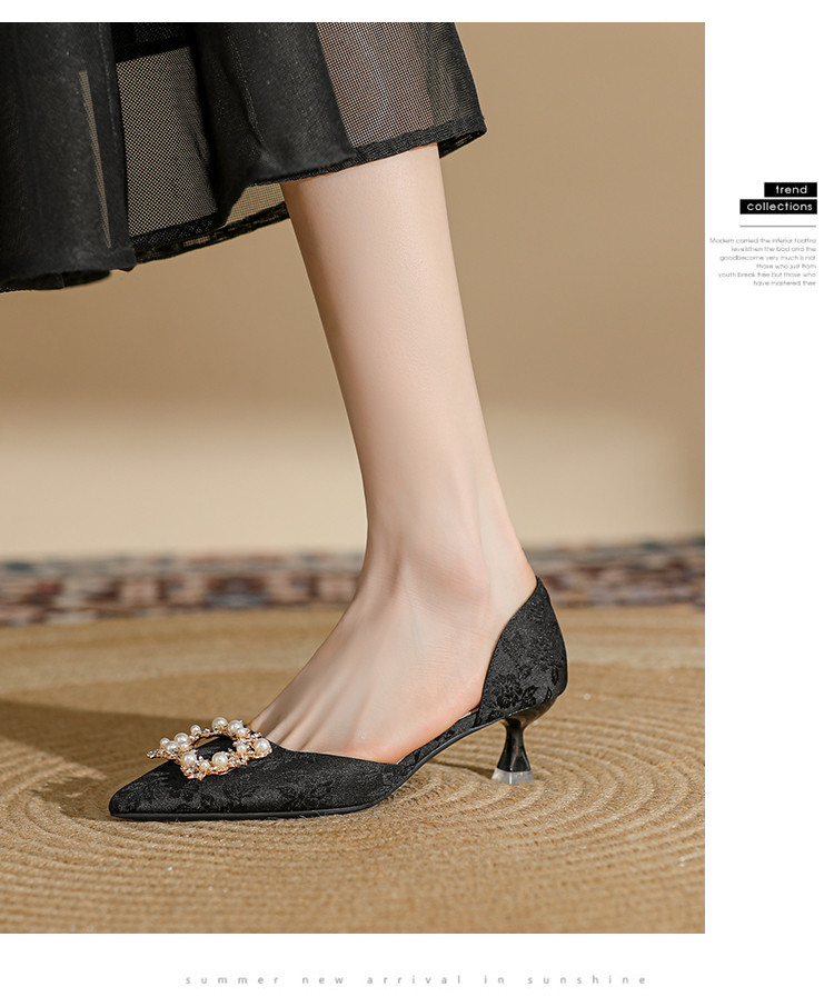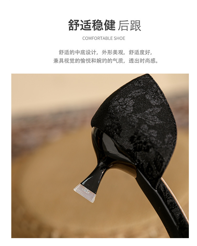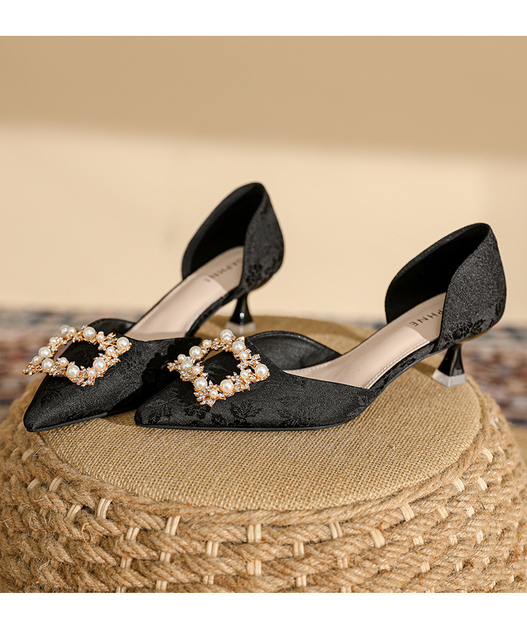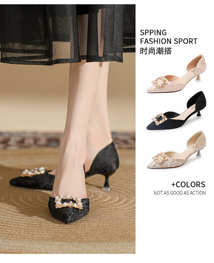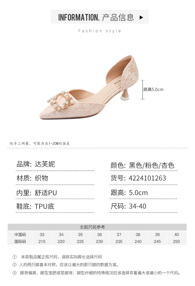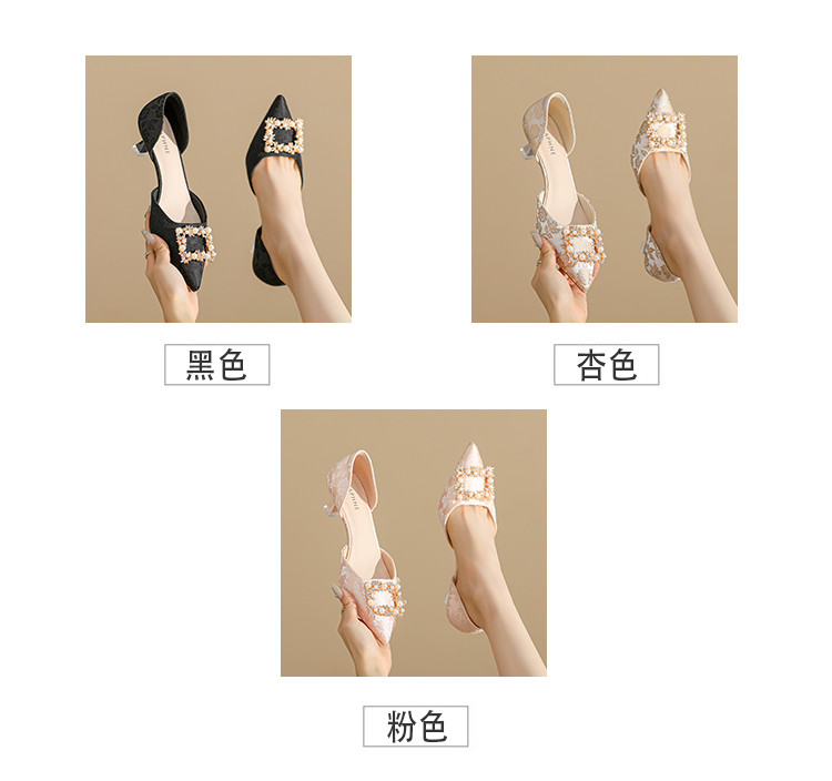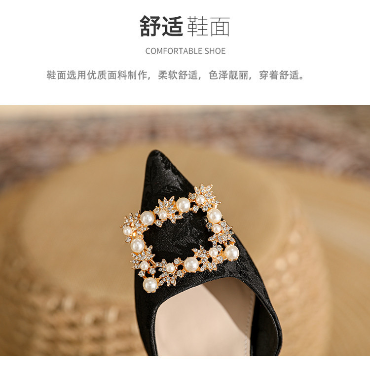 商品名称:【水钻方扣】高跟鞋女2025新款时尚尖头女单鞋浅口细跟女单鞋 412119