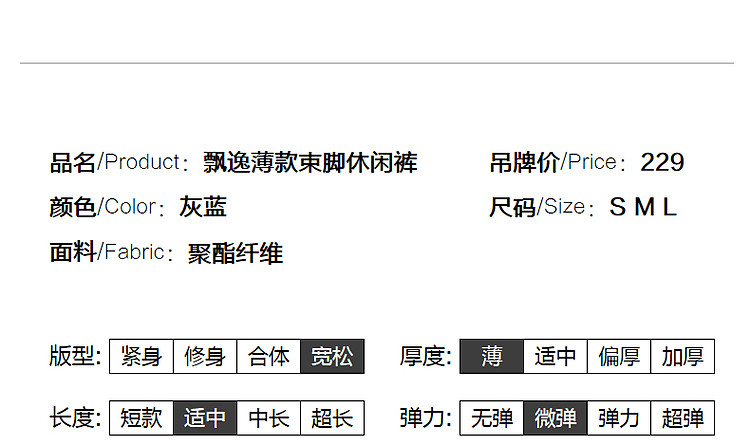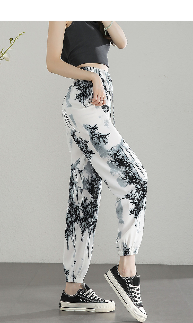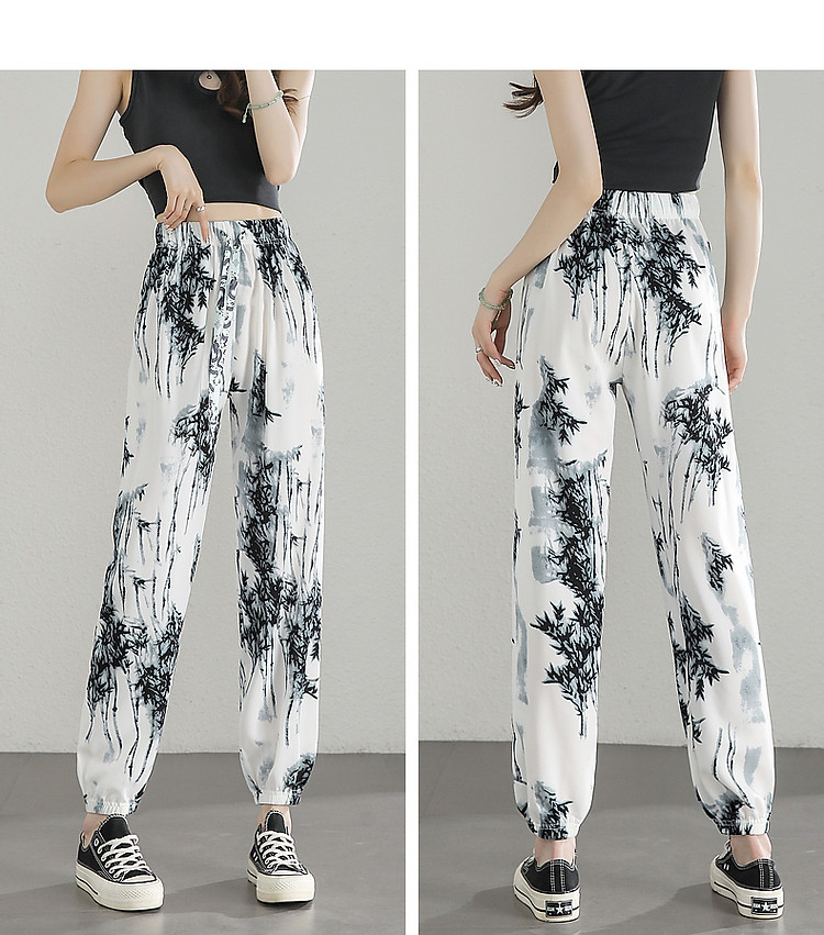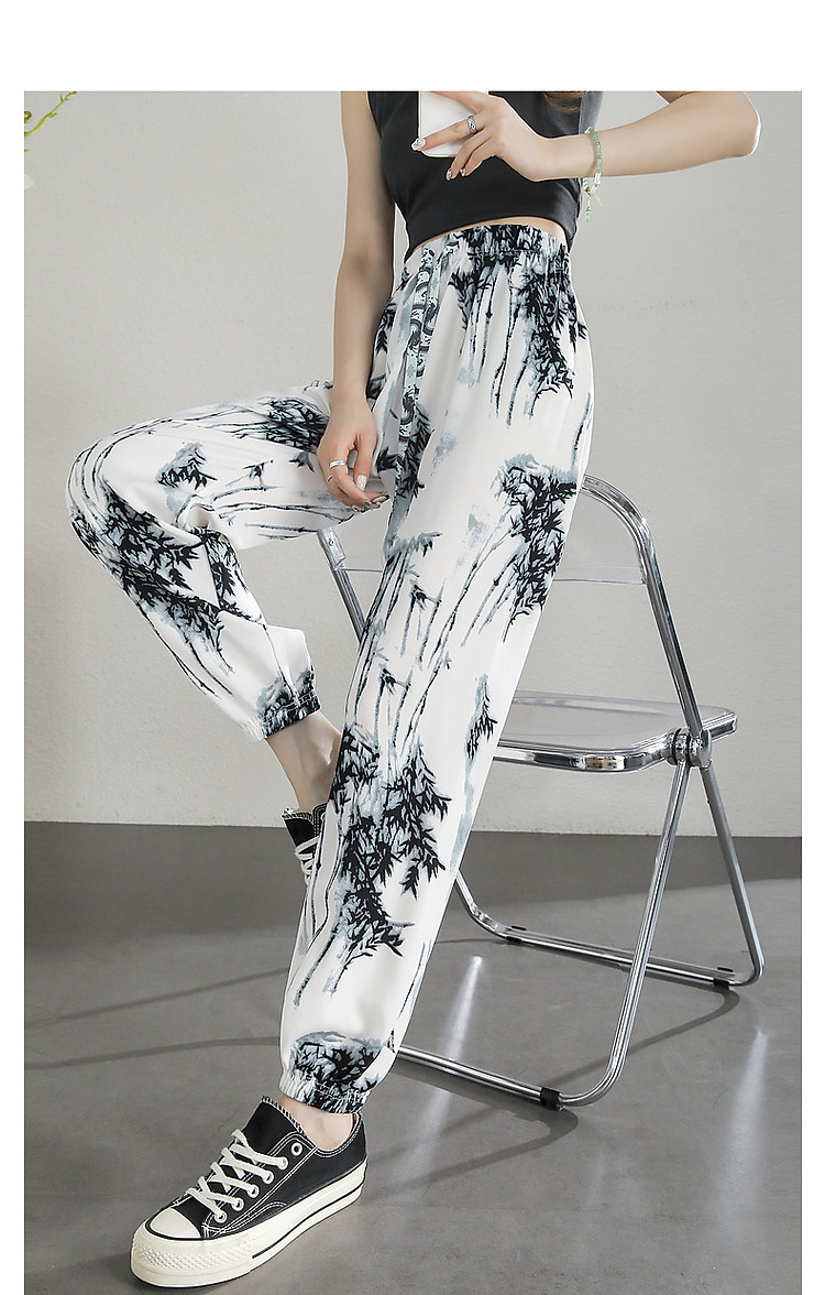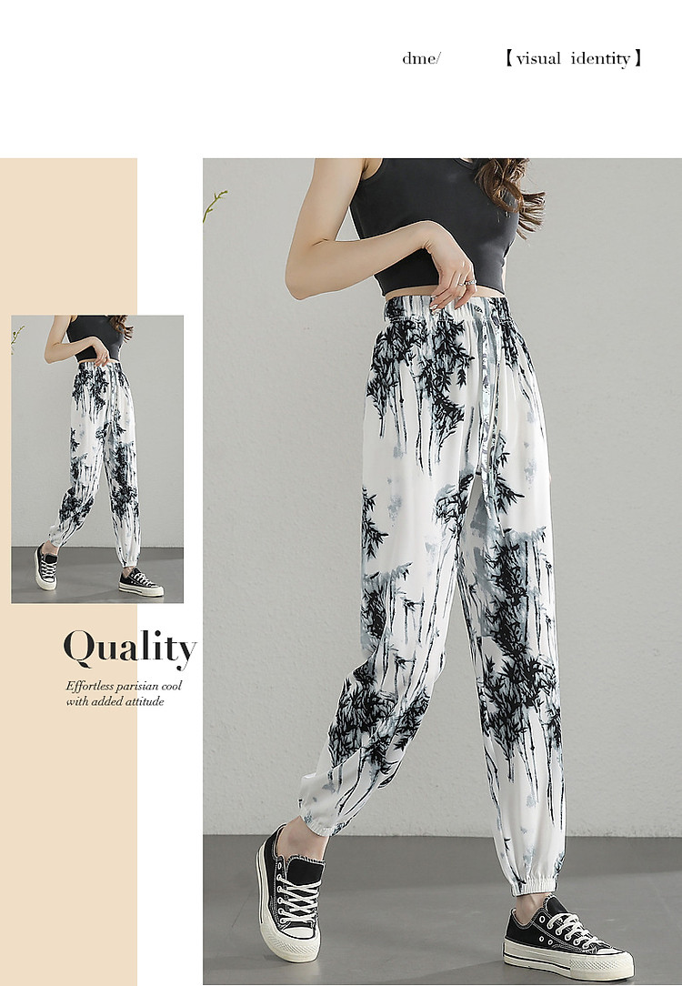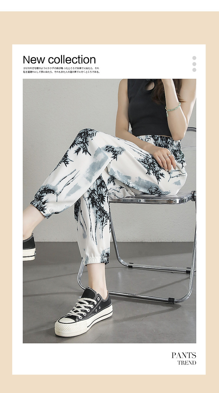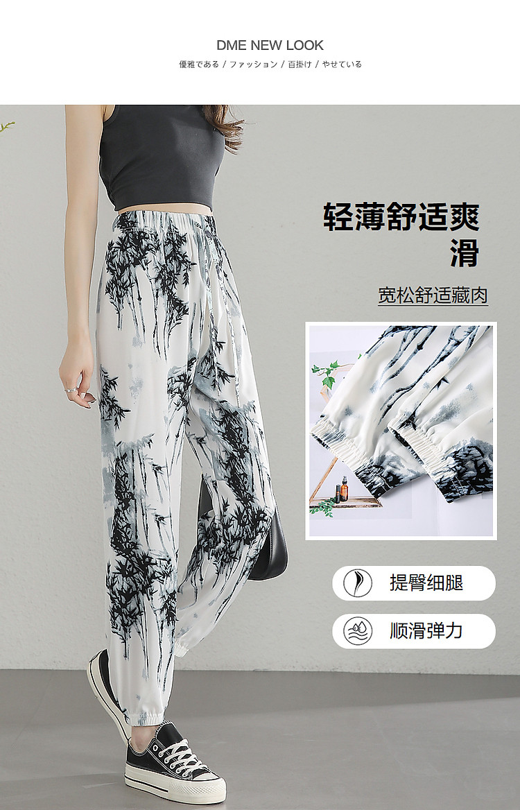 商品名称:【国风水墨印象】夏爽滑飘逸薄款舒适松紧腰显瘦藏肉休闲裤 938817