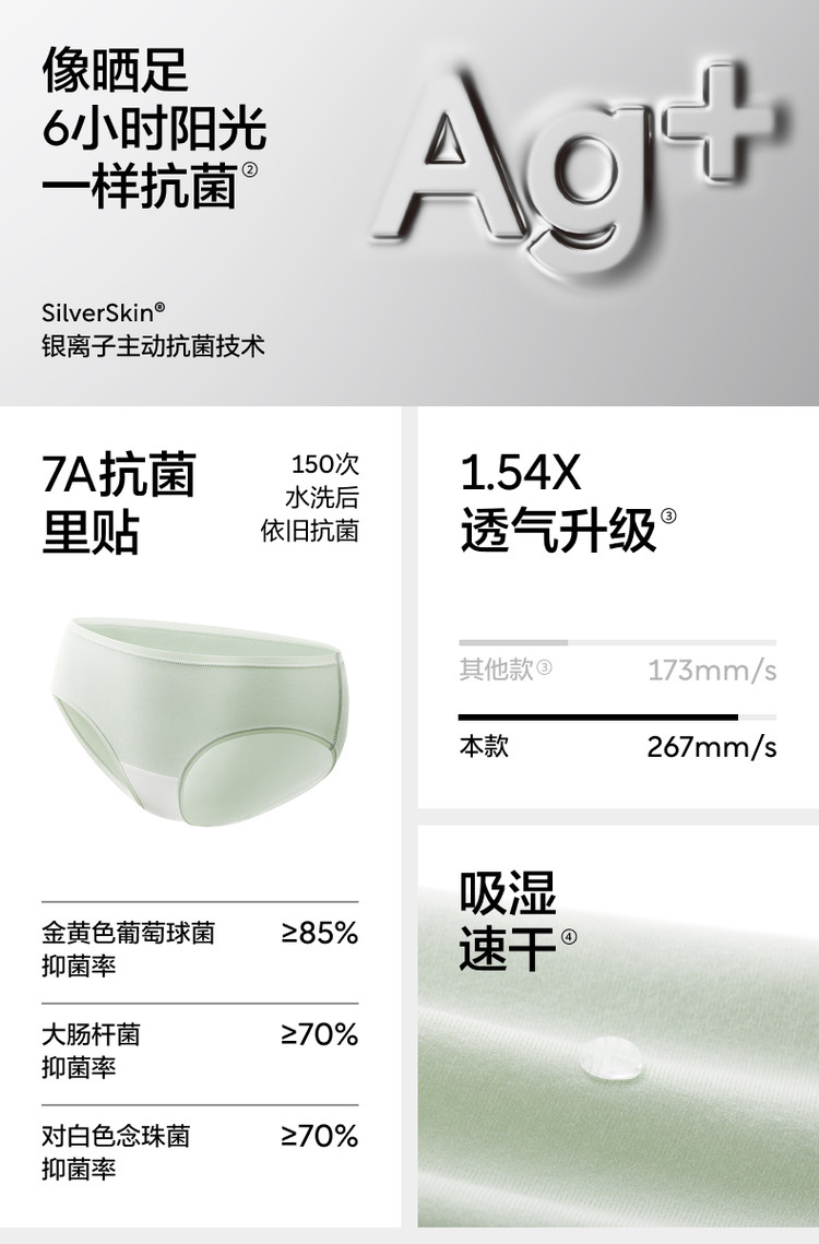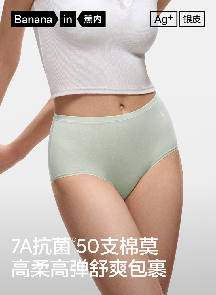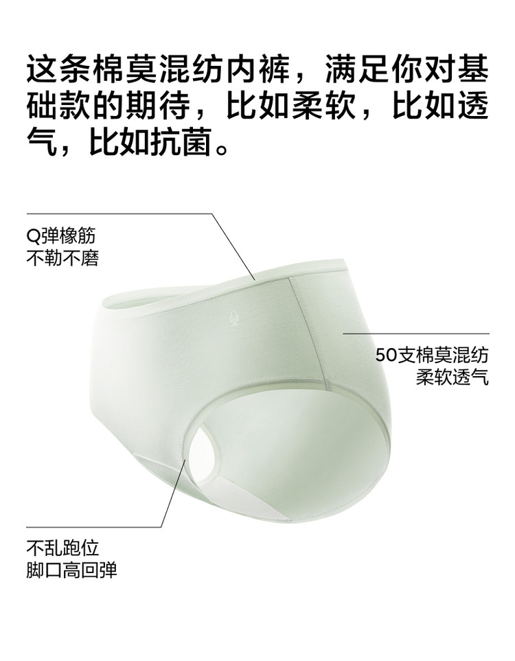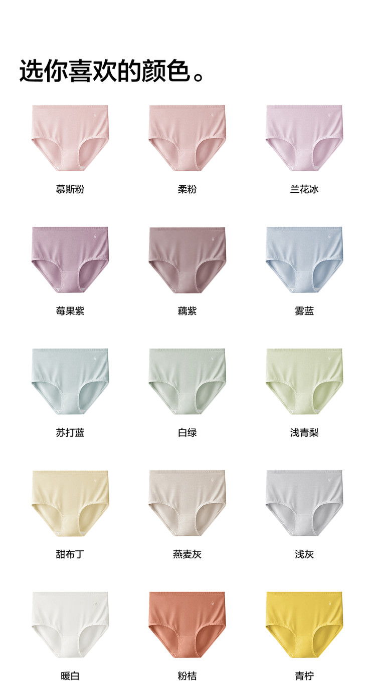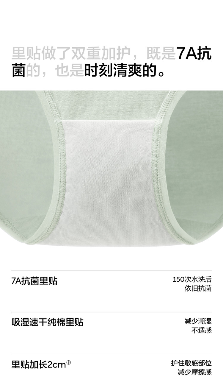 商品名称:300S女士纯棉裆透气抗菌女中高腰三角无痕女生棉莫内裤3件 634053