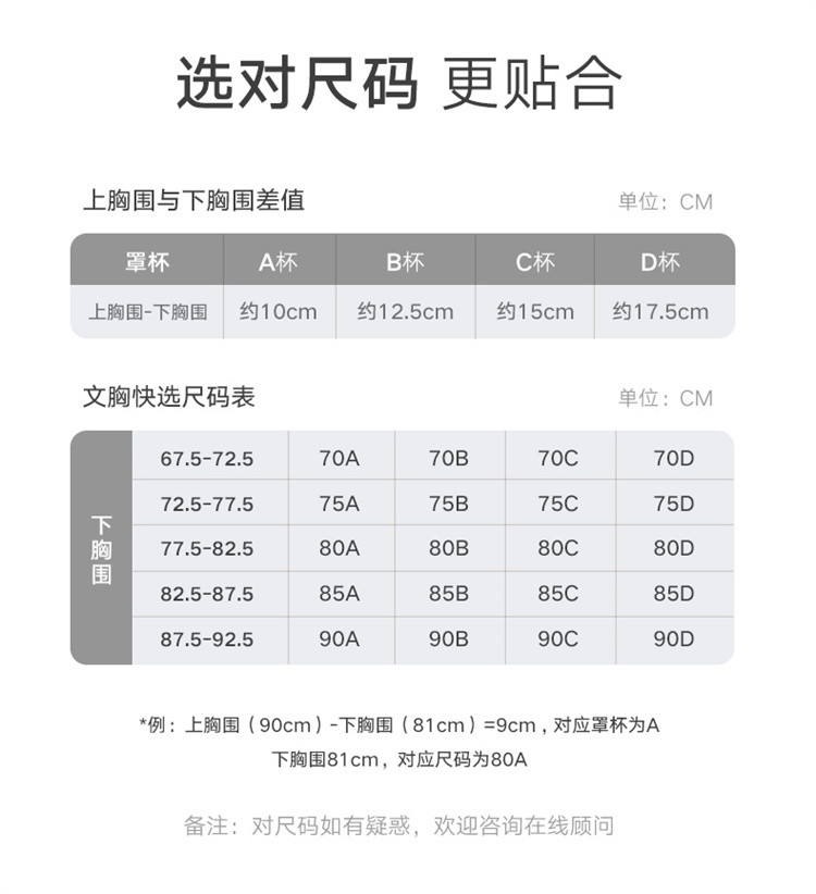 | 尺码 | 下胸围(cm) | 上胸围(cm) |