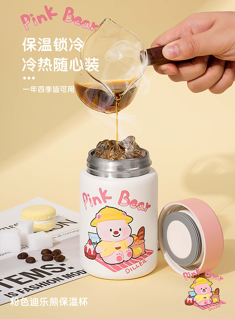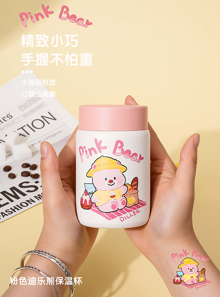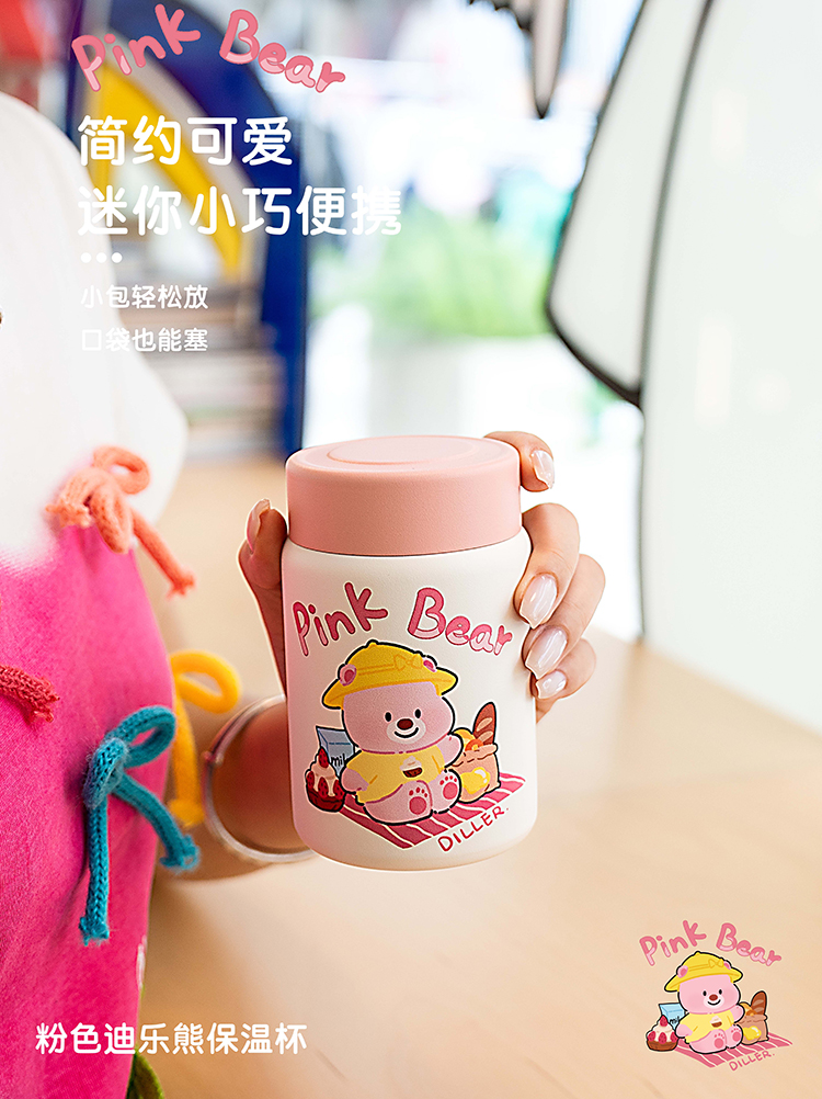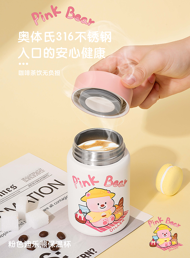 迪乐贝尔新品黄油小熊系列直饮杯可爱印花保温杯小巧便携学生水杯女士喝水杯230ML