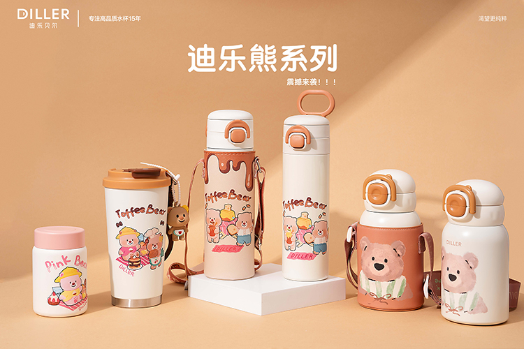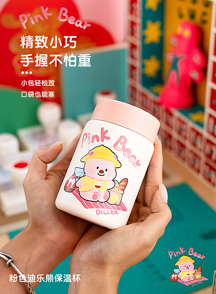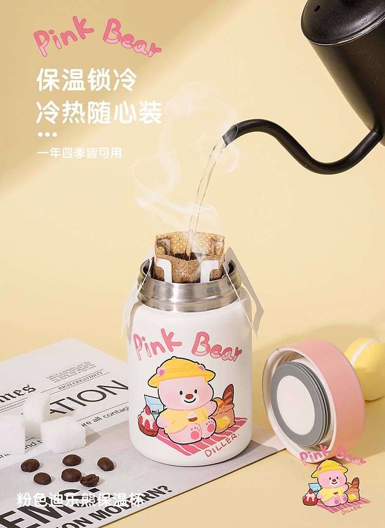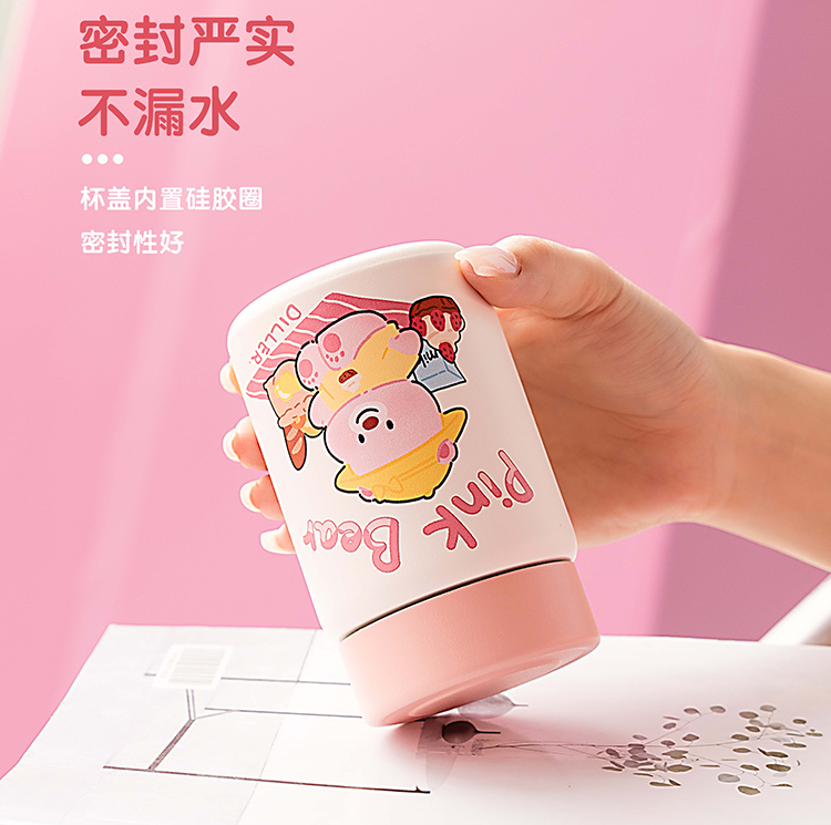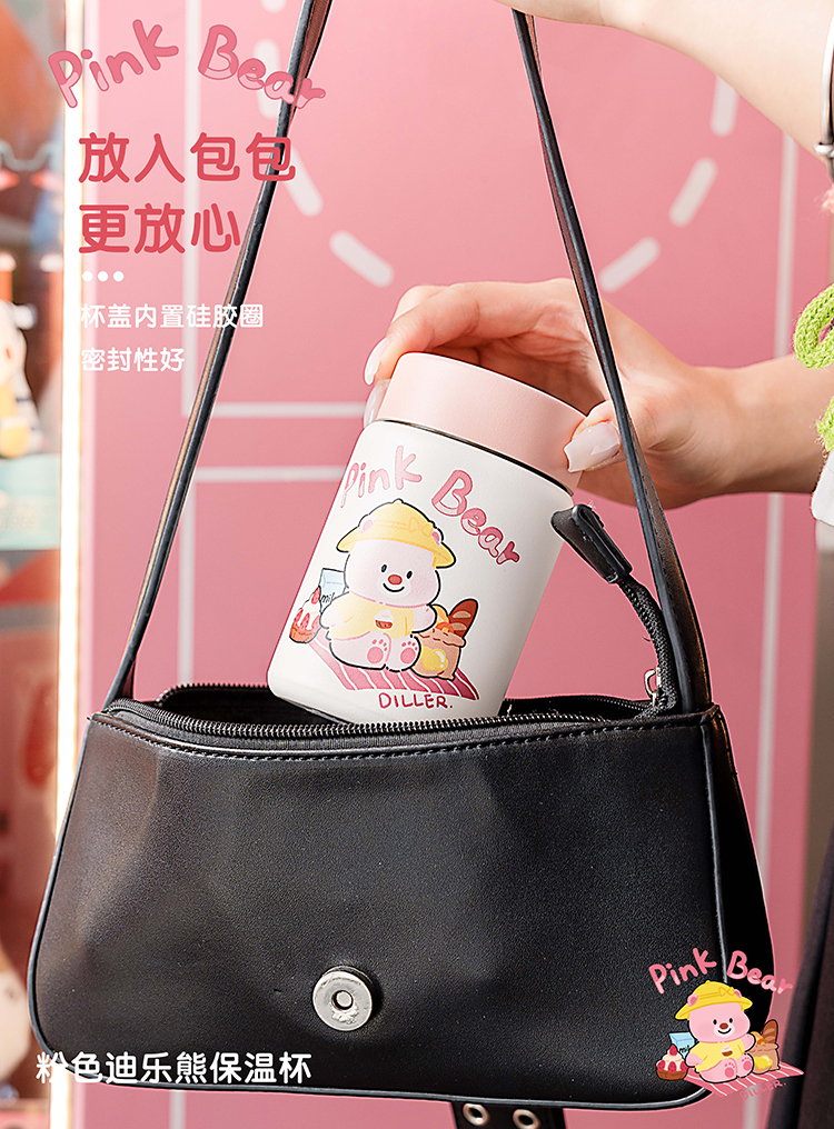 迪乐贝尔新品黄油小熊系列直饮杯可爱印花保温杯小巧便携学生水杯女士喝水杯230ML