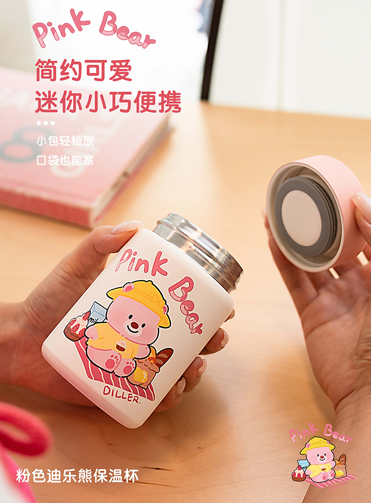 商品名称:迪乐贝尔新品黄油小熊系列直饮杯可爱印花保温杯小巧便携学生水杯女士喝水杯230ML