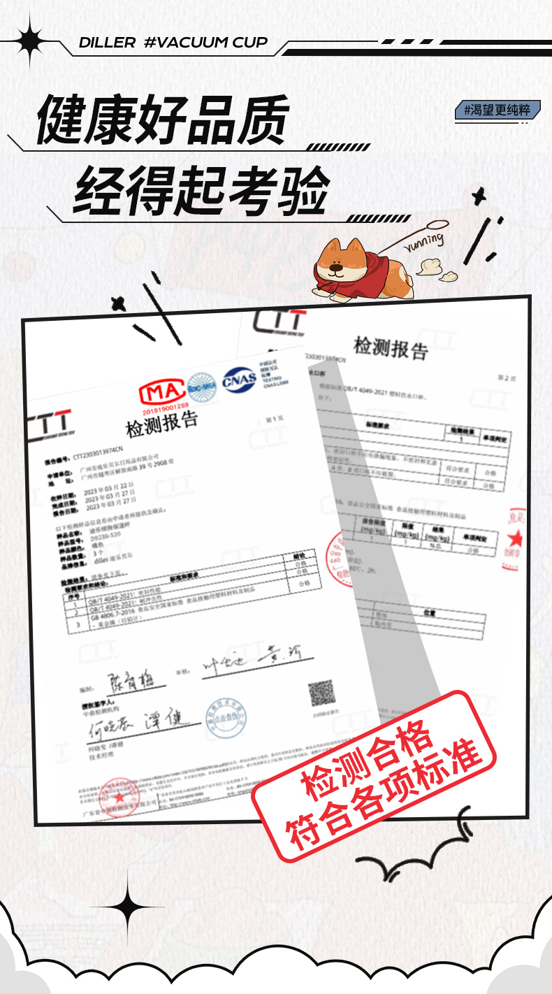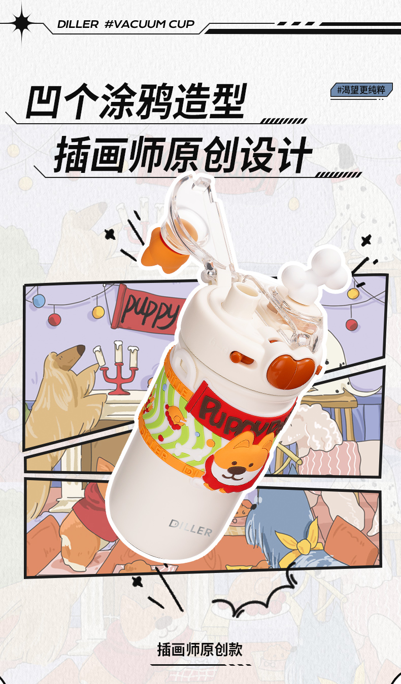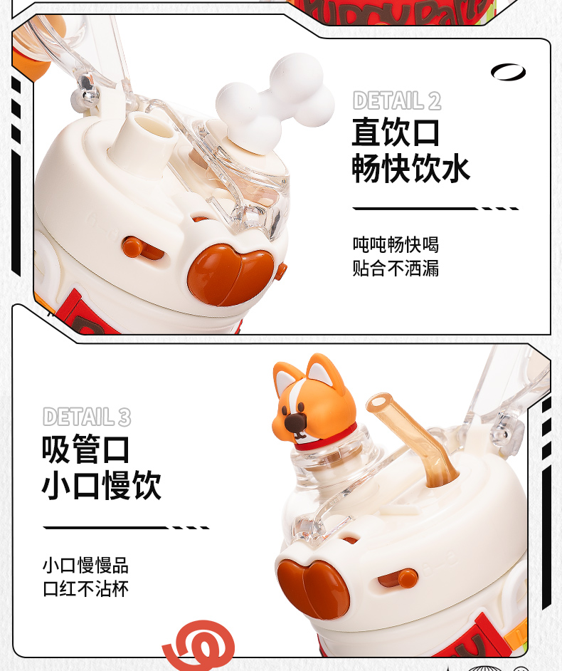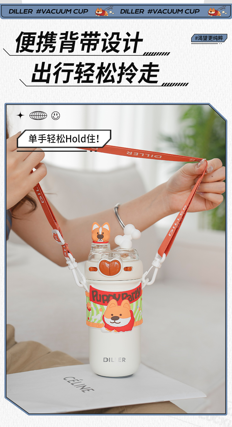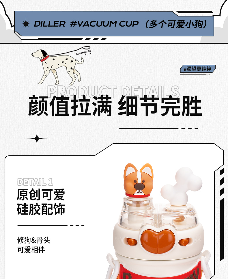 商品名称:迪乐贝尔新品修狗系列女士保温杯儿童便携提绳弹跳杯316不锈钢学生双饮可爱水杯520ML