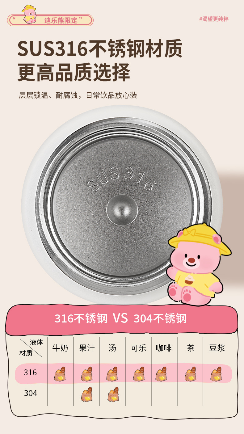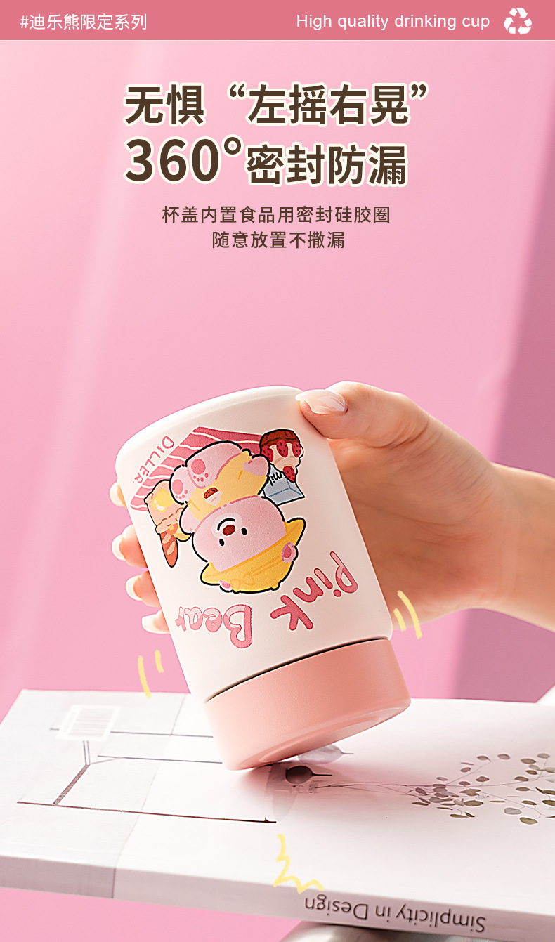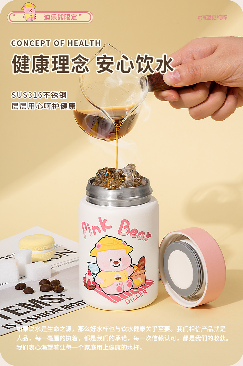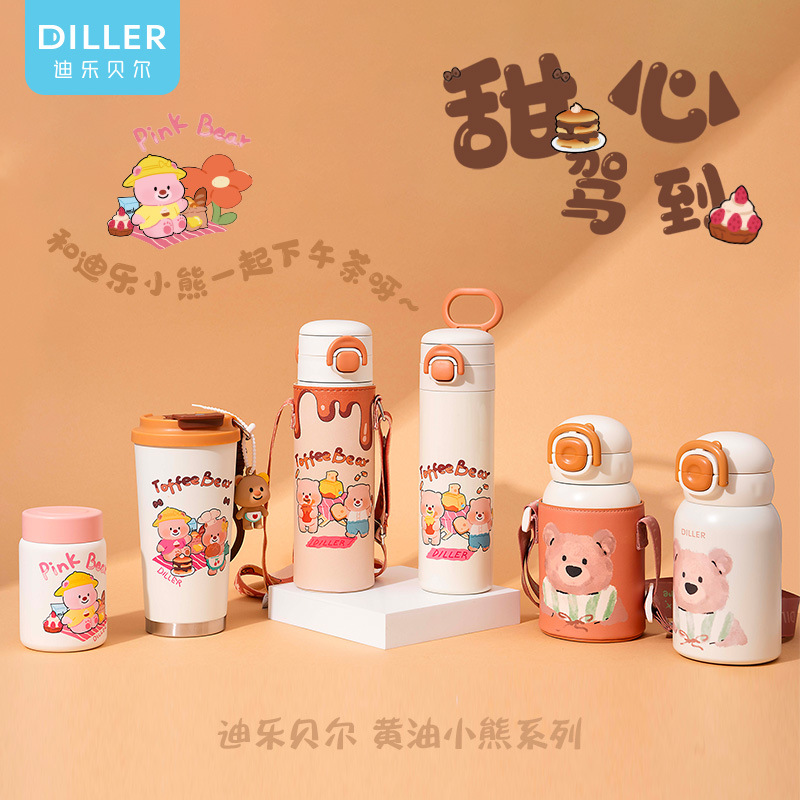 迪乐贝尔新品黄油小熊系列保温杯316不锈钢便携学生水杯成人高颜值喝水杯女士可爱杯子