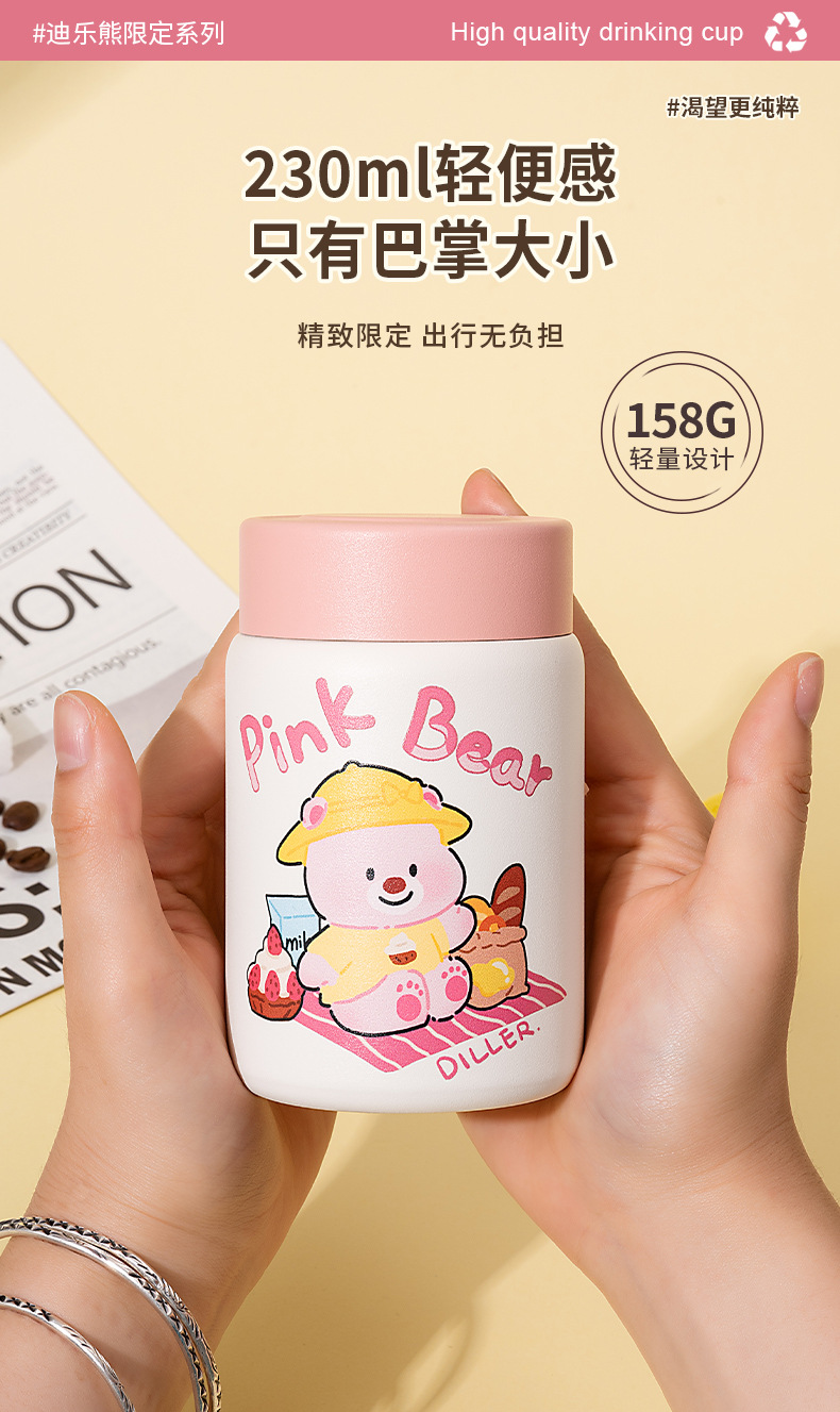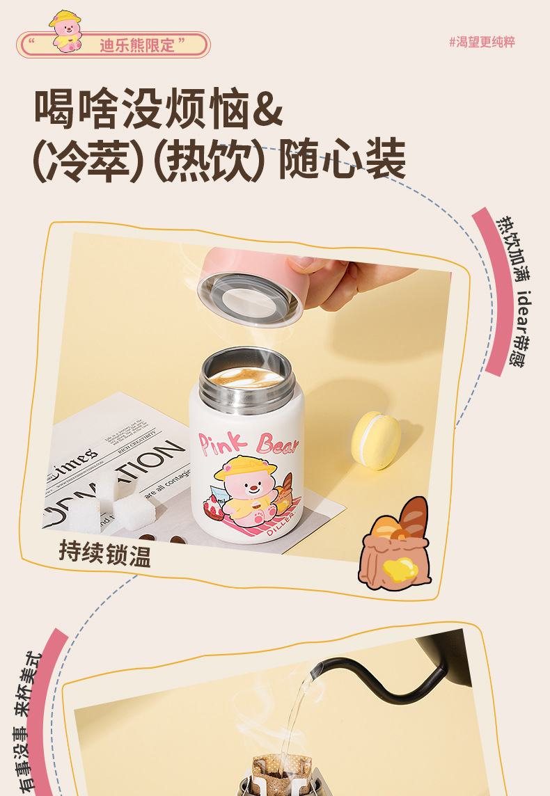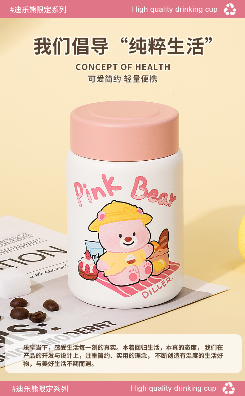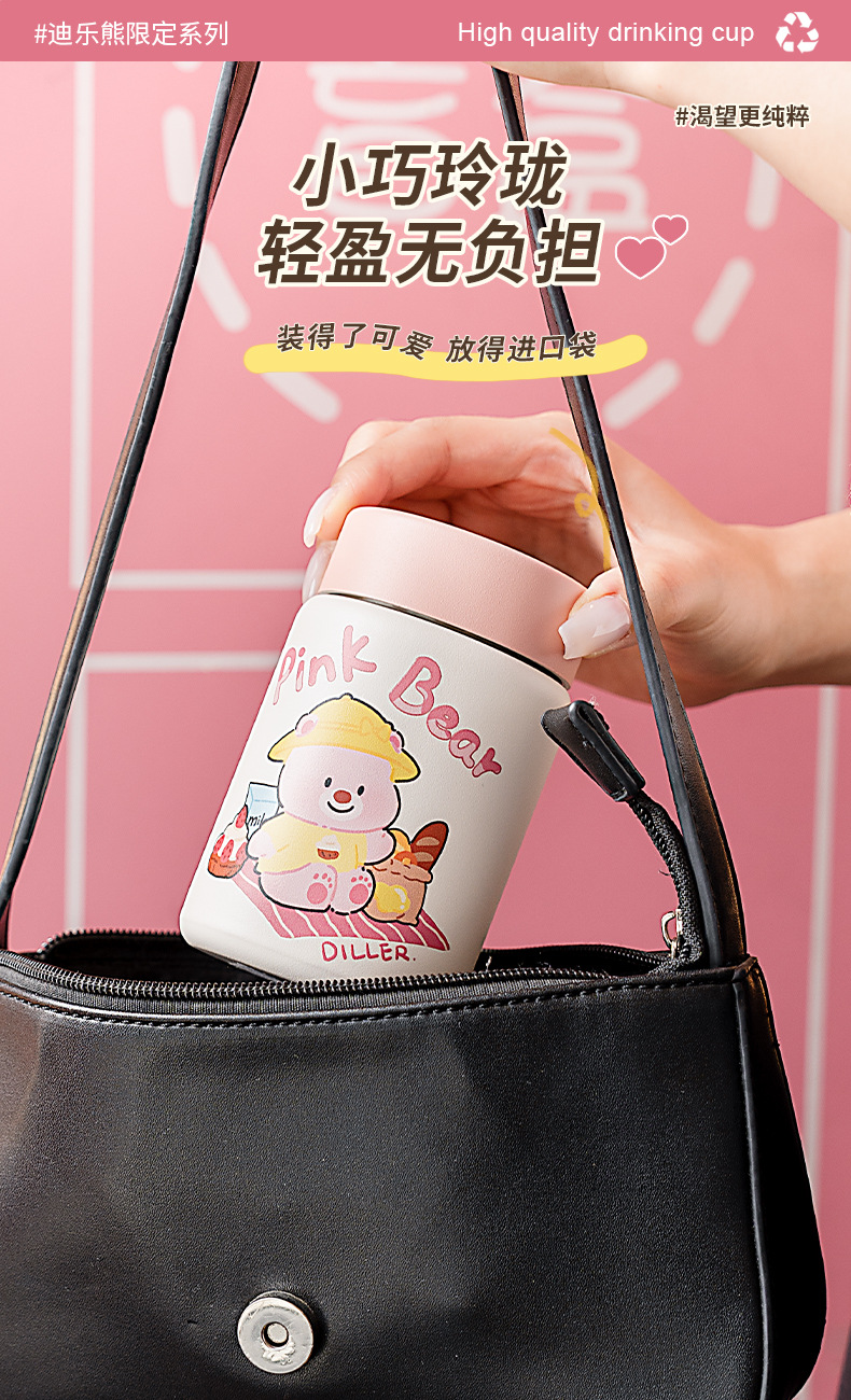 商品名称:迪乐贝尔新品黄油小熊系列保温杯316不锈钢便携学生水杯成人高颜值喝水杯女士可爱杯子
