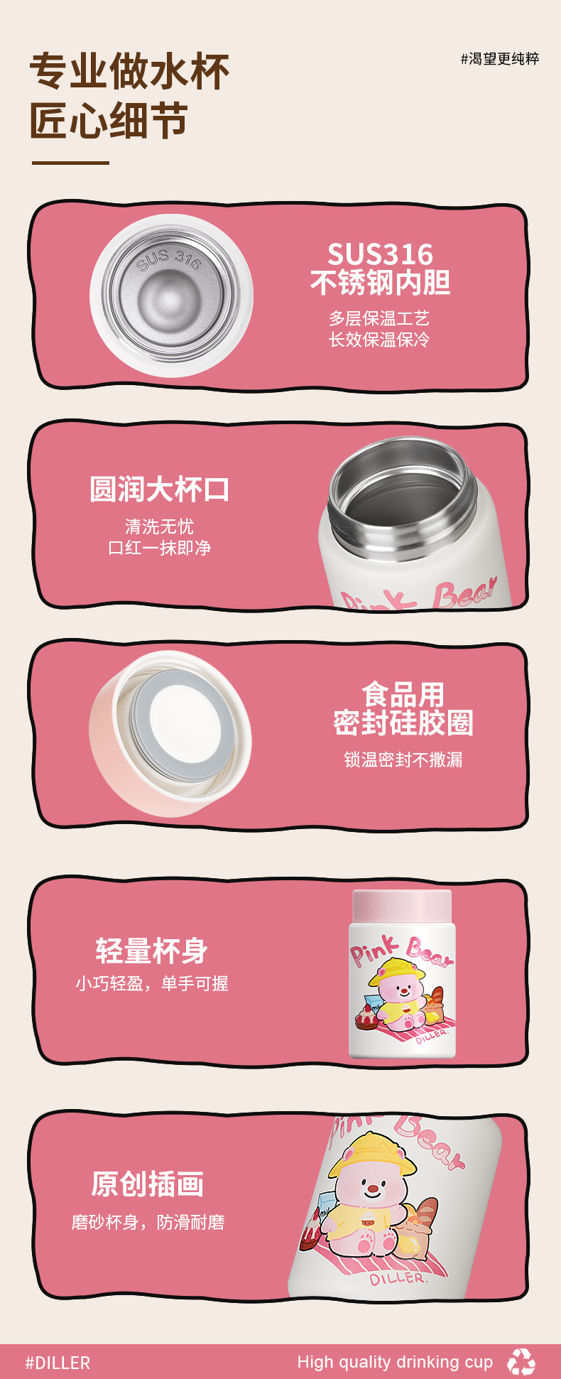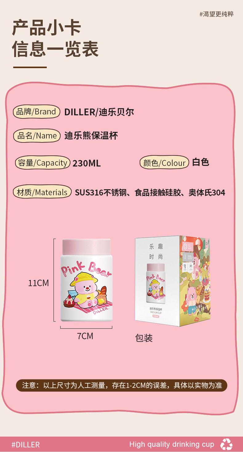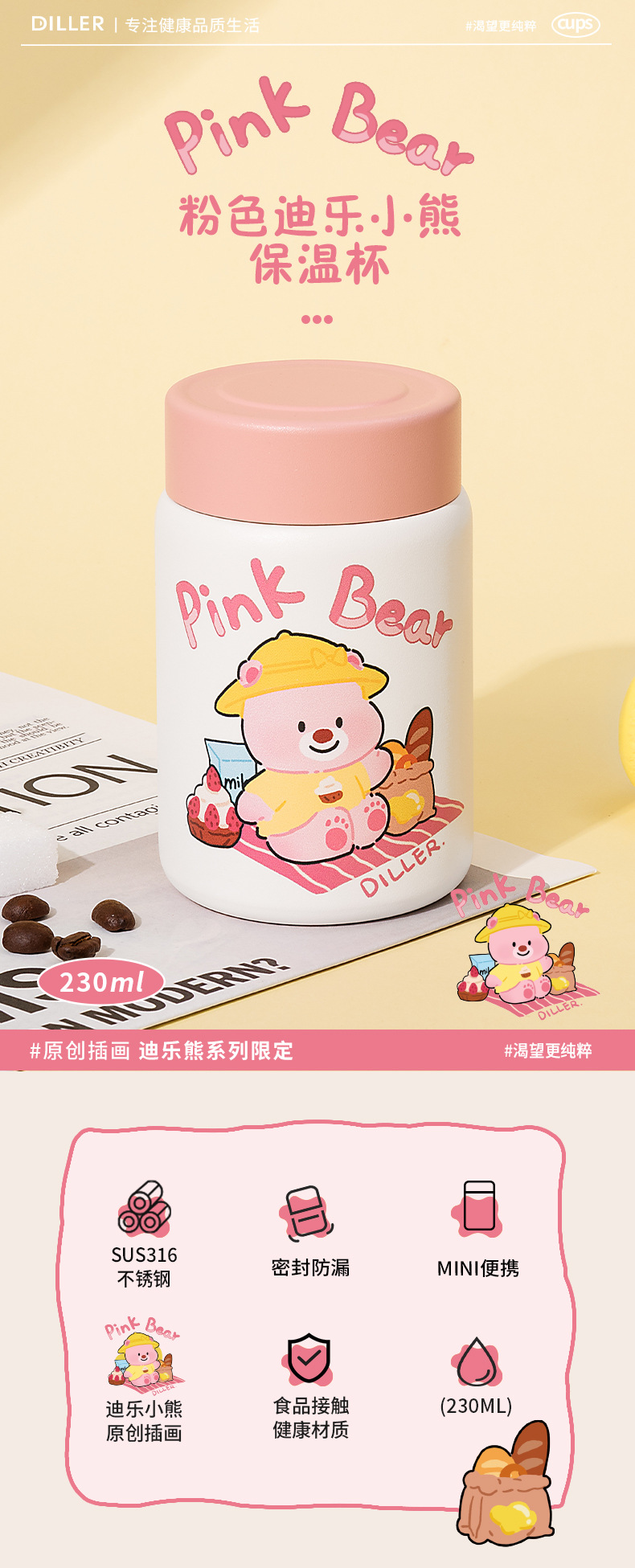 商品名称:迪乐贝尔新品黄油小熊系列保温杯316不锈钢便携学生水杯成人高颜值喝水杯女士可爱杯子