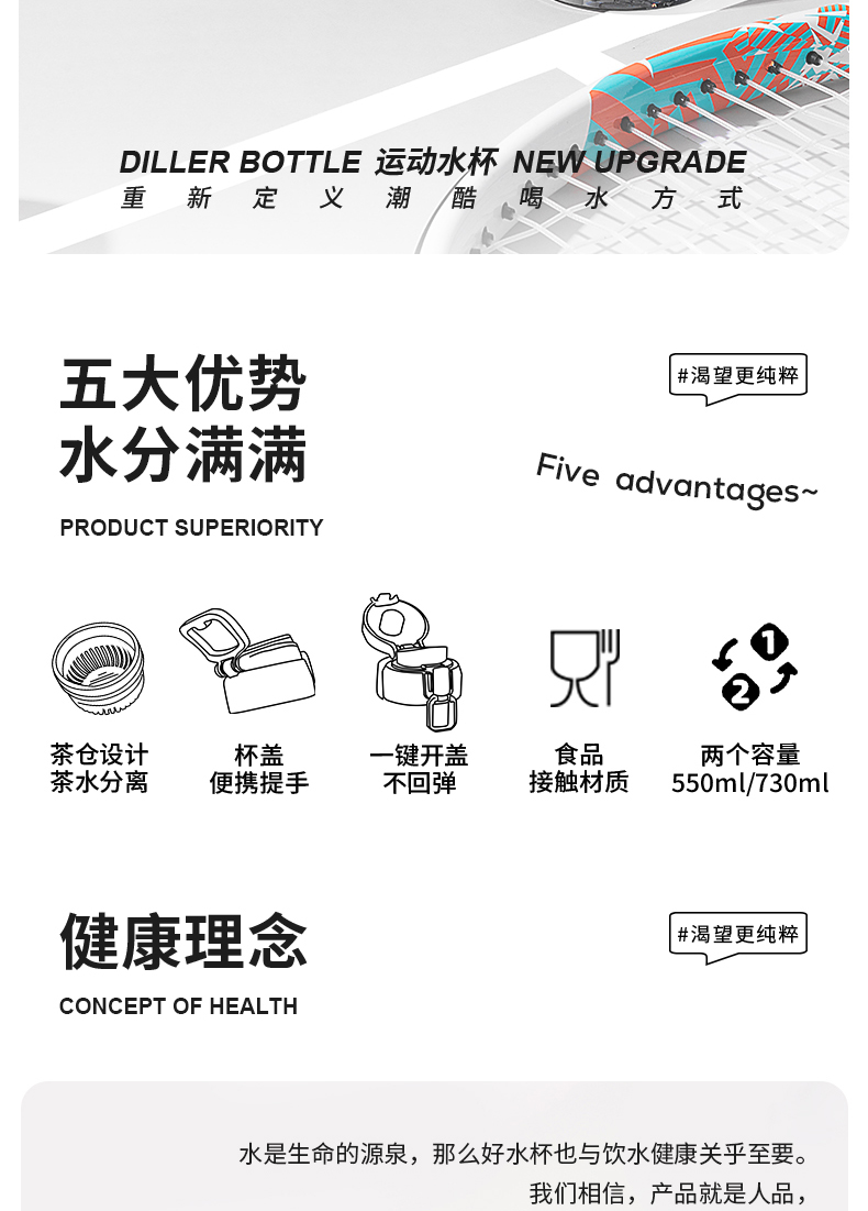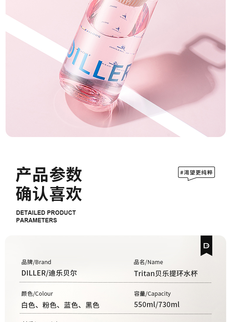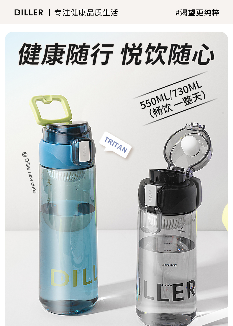 商品名称:迪乐贝尔DILLER新品茶水分离成人水杯高颜值直饮杯带茶隔tritan杯子学生便携运动喝水壶