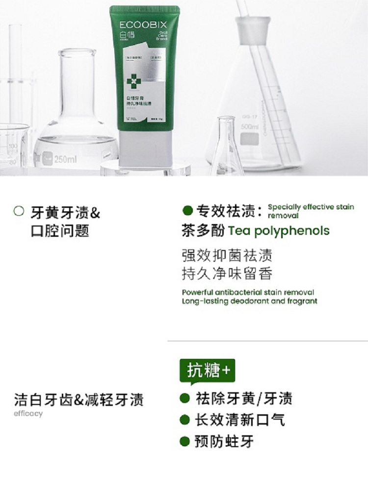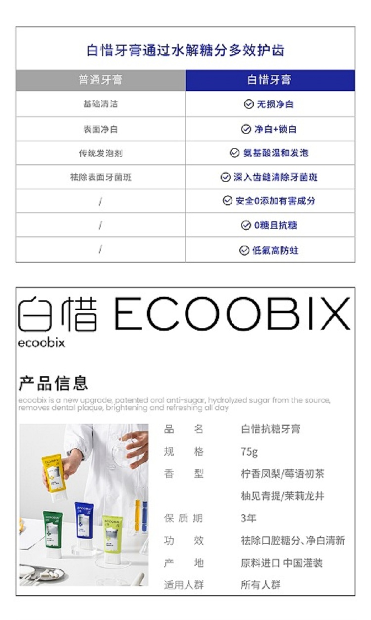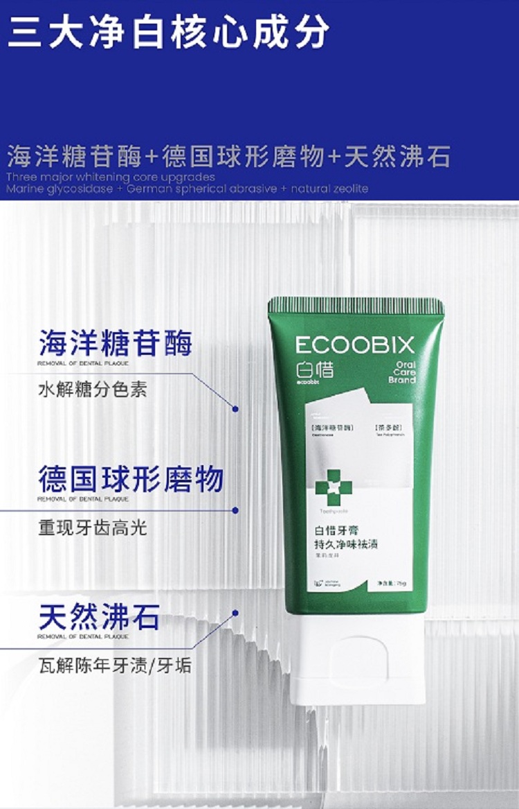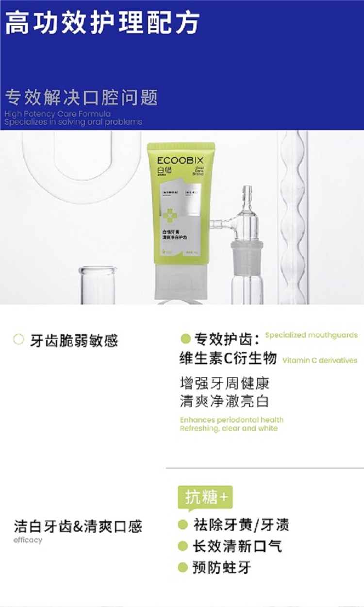 商品名称:白惜牙膏白皙亮白净白去黄牙垢去口臭清新口气护理清洁牙齿氨基酸75g