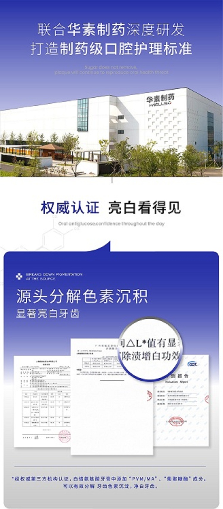 白惜牙膏白皙亮白净白去黄牙垢去口臭清新口气护理清洁牙齿氨基酸75g