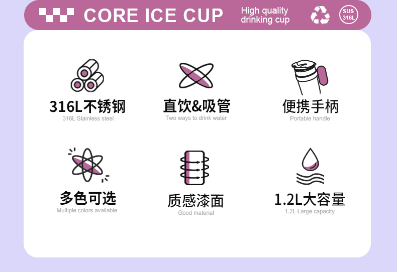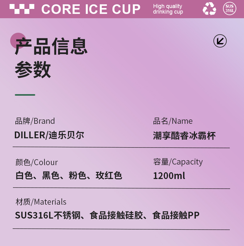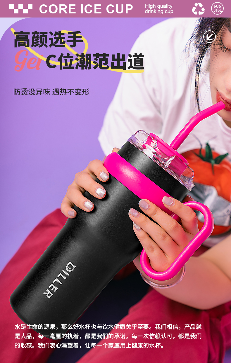 商品名称:迪乐贝尔DILLER新品女士高颜值吸管水杯成人吨吨水壶保冷杯子大容量巨无霸学生保温杯