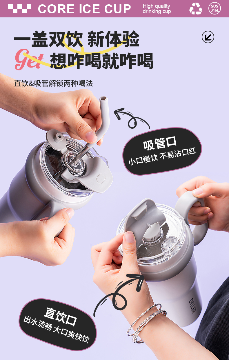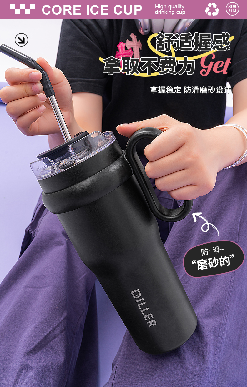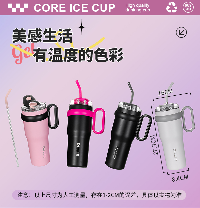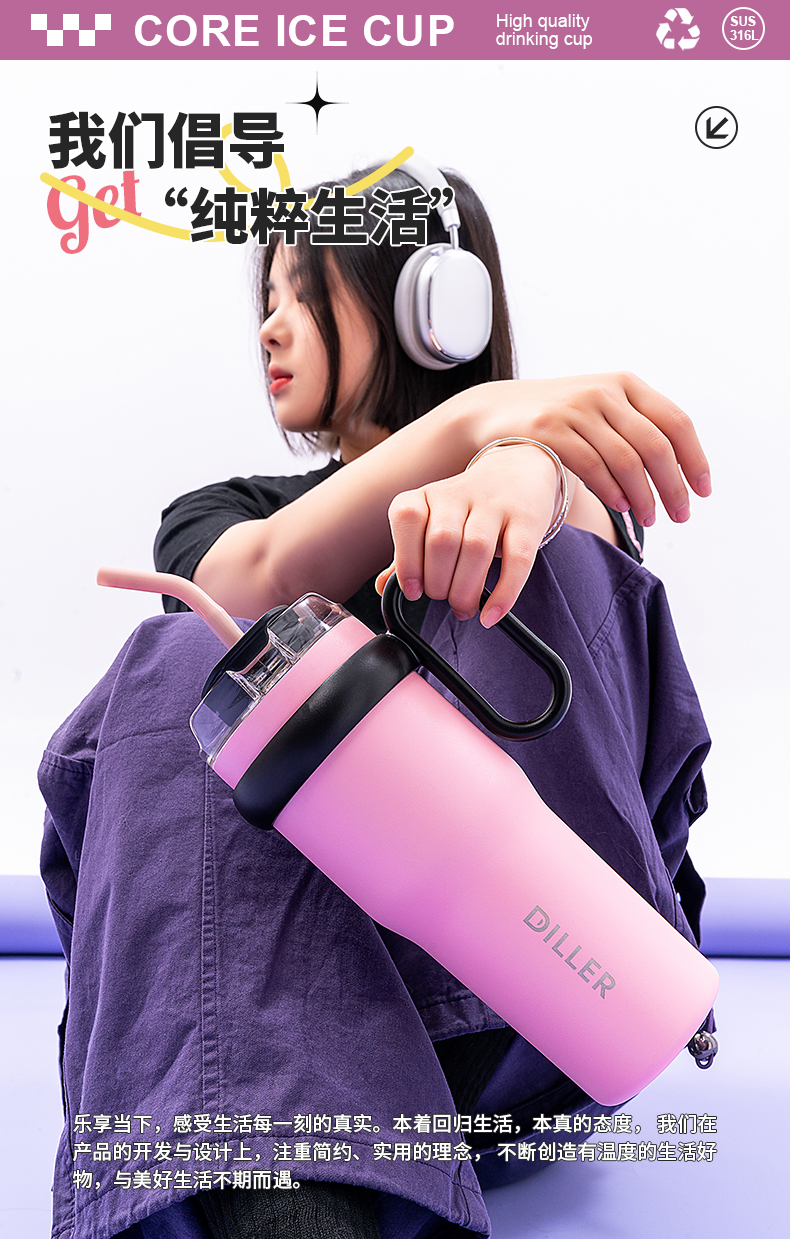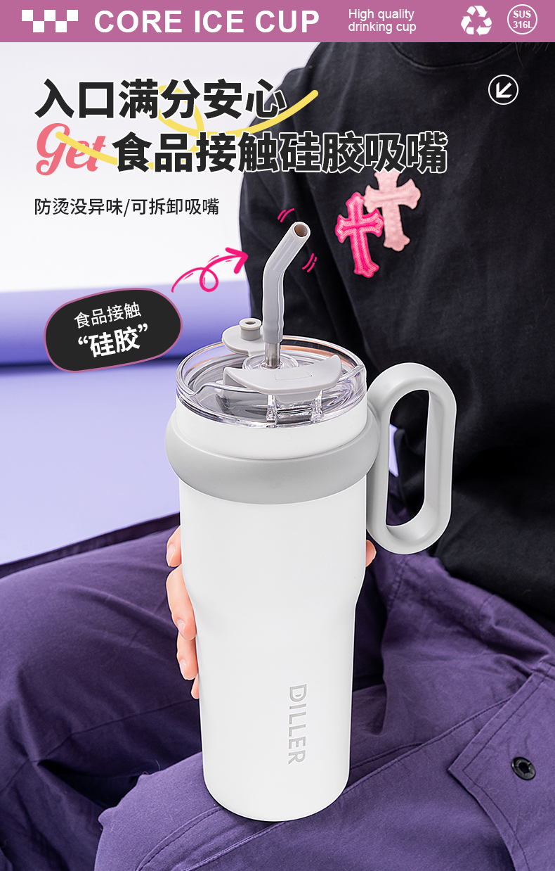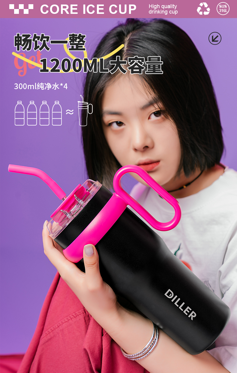 迪乐贝尔DILLER新品女士高颜值吸管水杯成人吨吨水壶保冷杯子大容量巨无霸学生保温杯