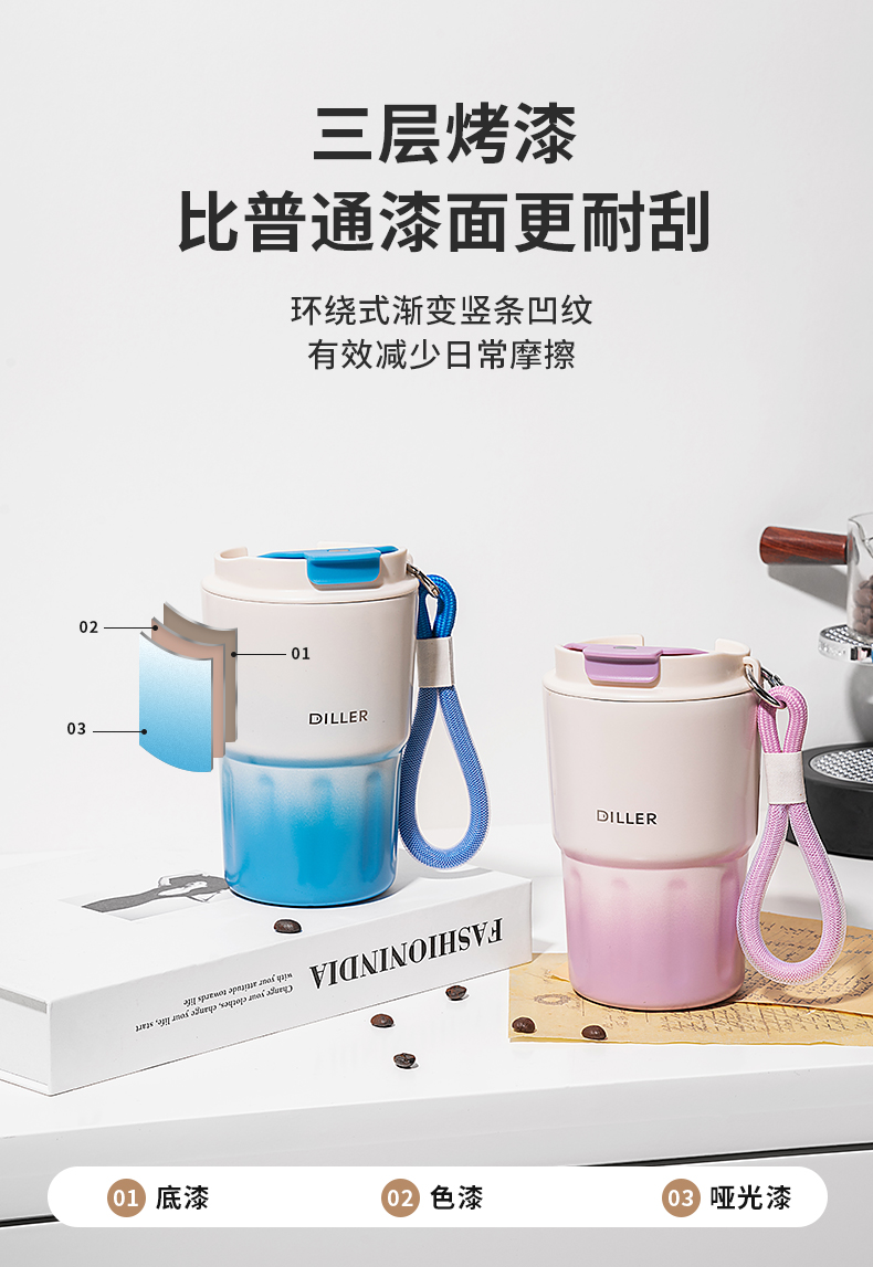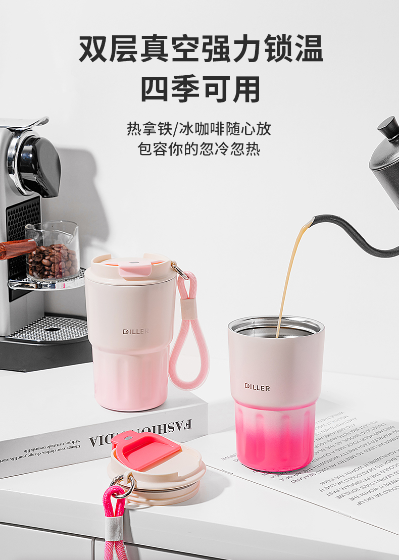 迪乐贝尔新品成人渐变色保温杯女生小巧随行水杯带提手便携不锈钢女士咖啡杯礼品杯子