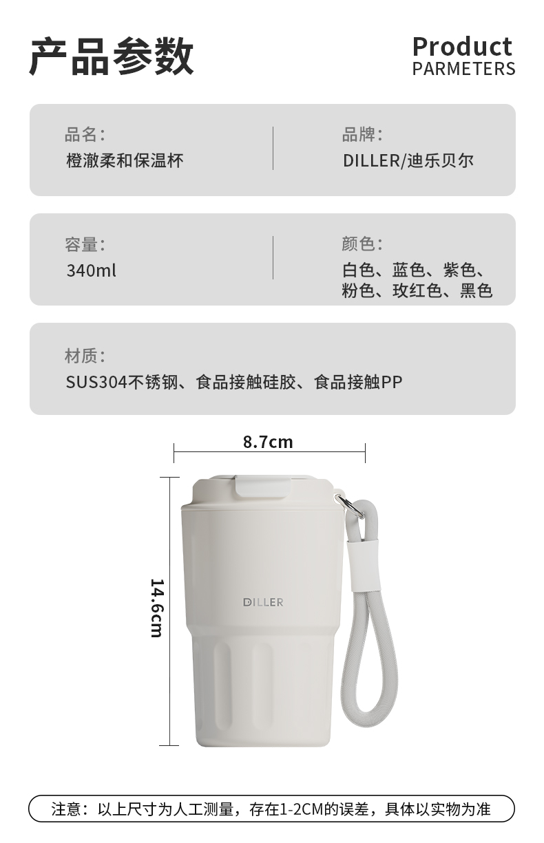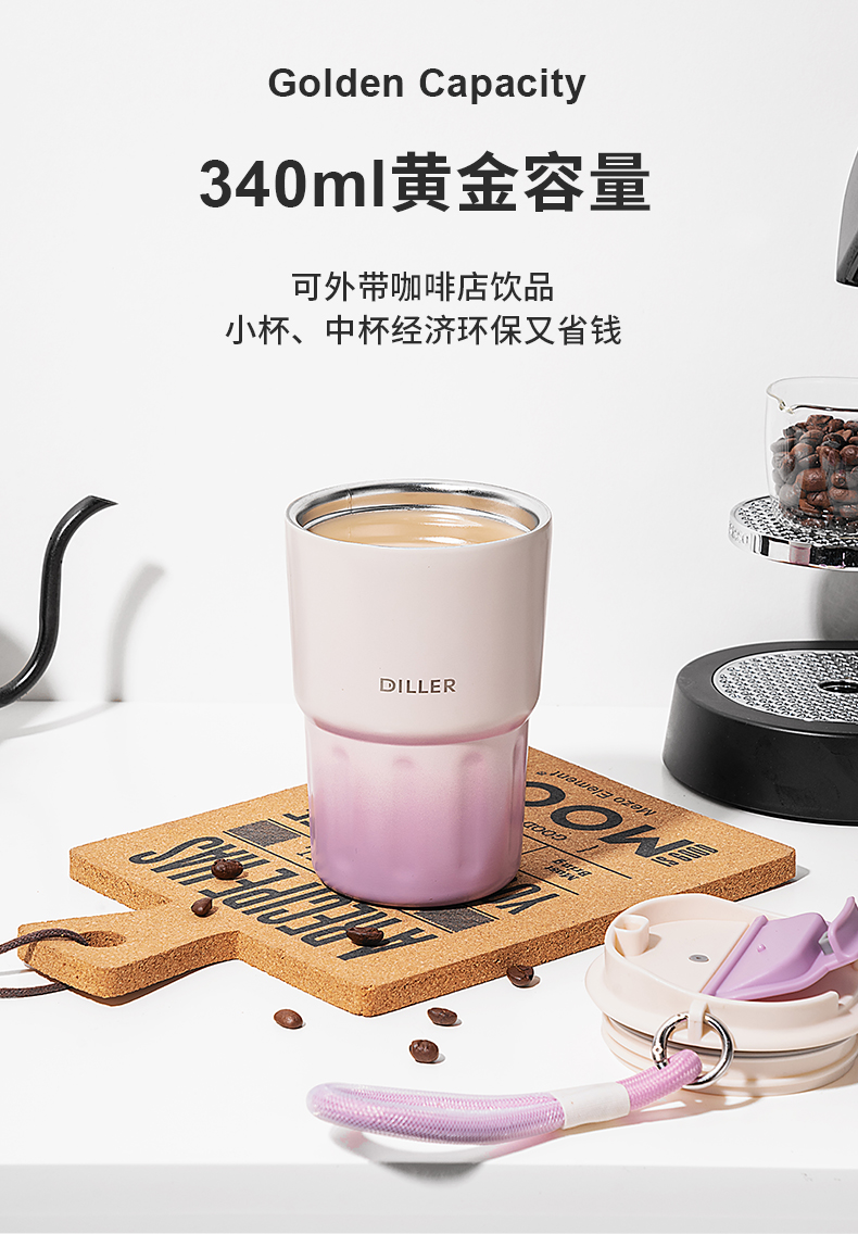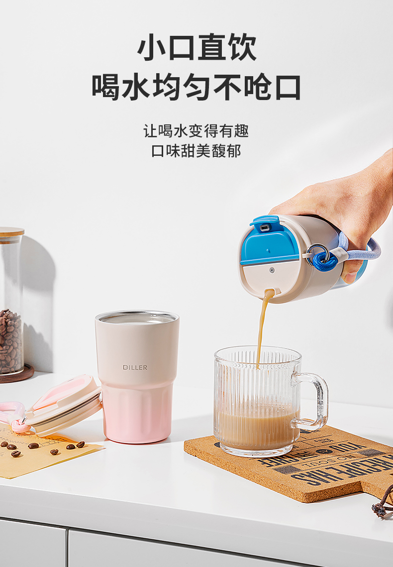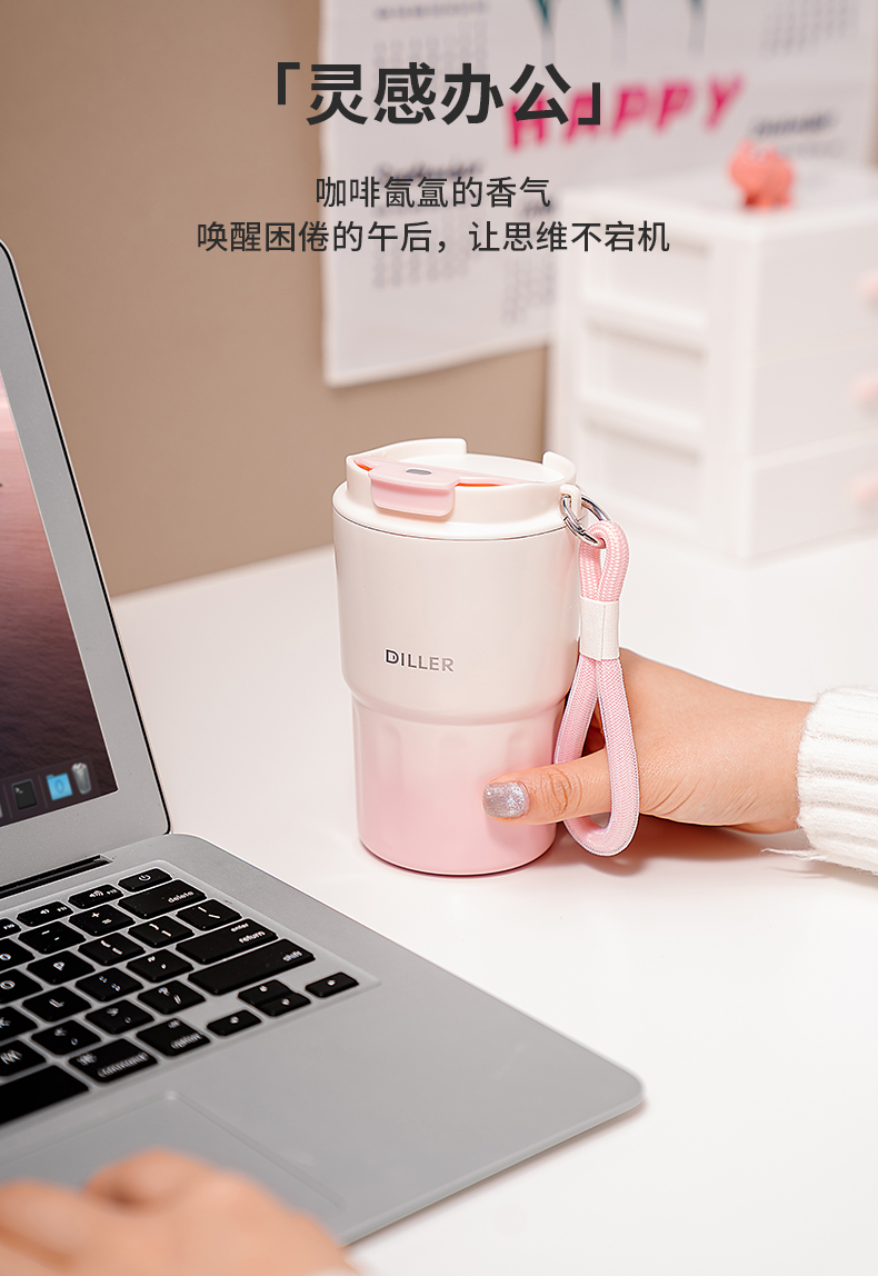 商品名称:迪乐贝尔新品成人渐变色保温杯女生小巧随行水杯带提手便携不锈钢女士咖啡杯礼品杯子