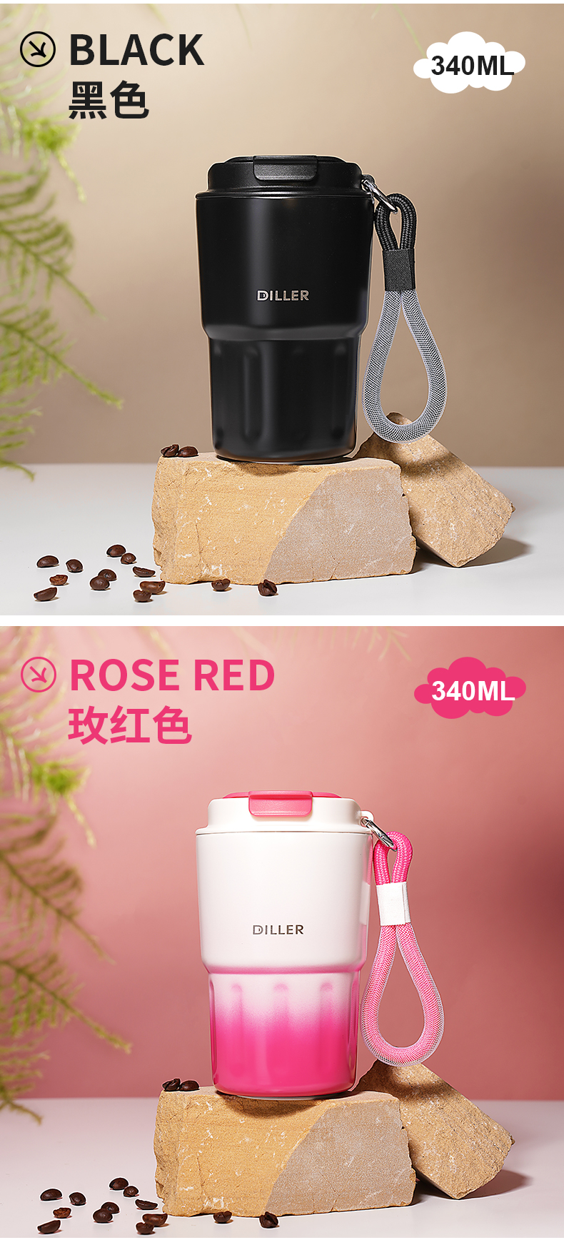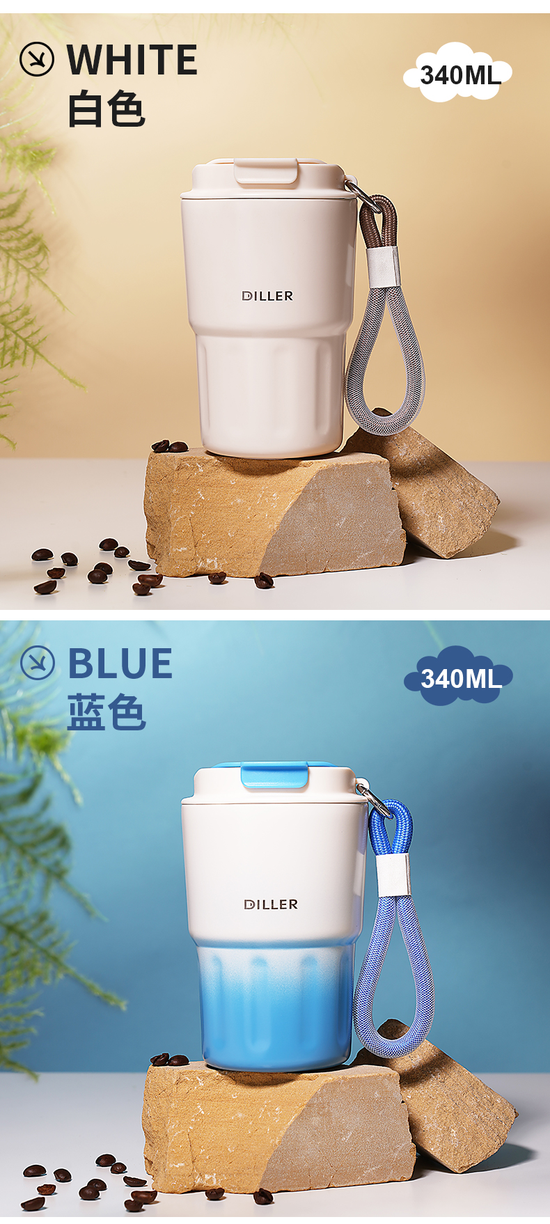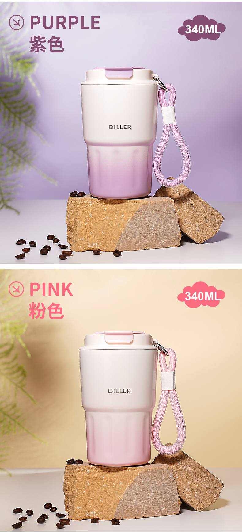 商品名称:迪乐贝尔新品成人渐变色保温杯女生小巧随行水杯带提手便携不锈钢女士咖啡杯礼品杯子