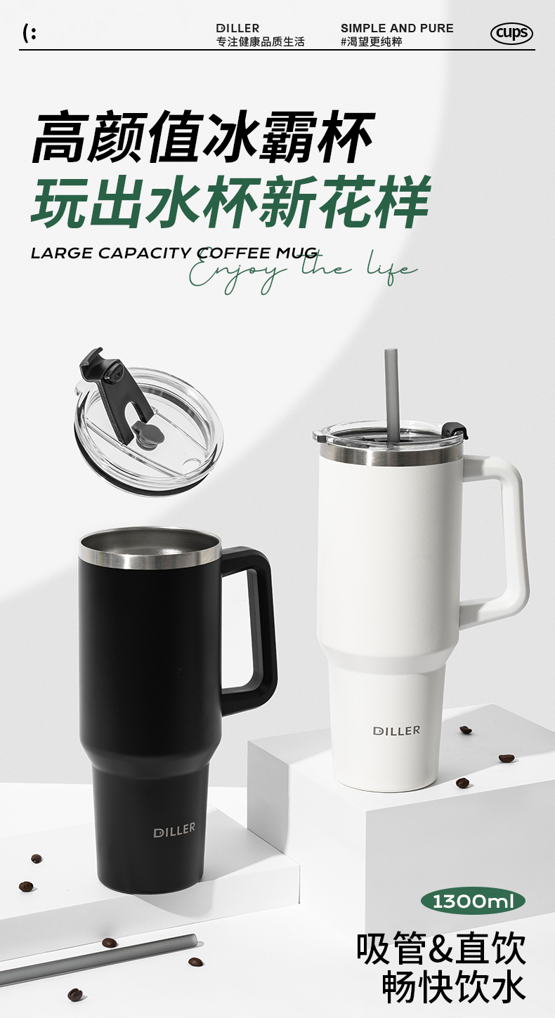 商品名称:迪乐贝尔夏季保冷杯成人高颜值咖啡杯车载杯大容量带吸管水杯简约冰霸杯子学生吸管杯