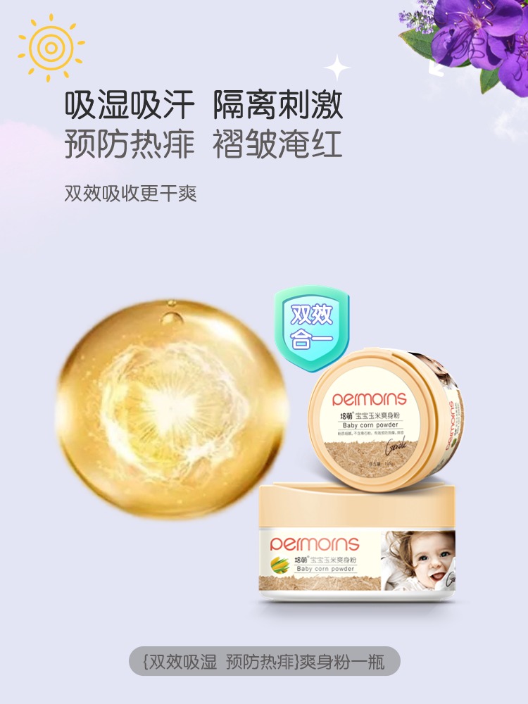 商品名称:包邮】【培萌玉米爽身粉140g】爽身粉痱子粉桃子水玉米婴儿松花粉热痱粉痱子桃叶