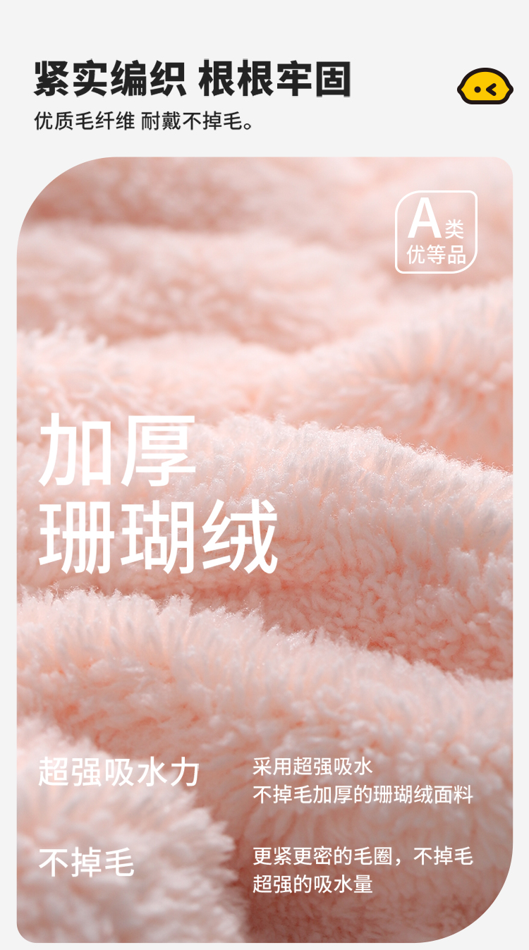 柠檬宝宝 Lemonkid干发帽 加厚珊瑚绒吸水速干包头巾 儿童卡通干发毛巾舒适温柔不勒头