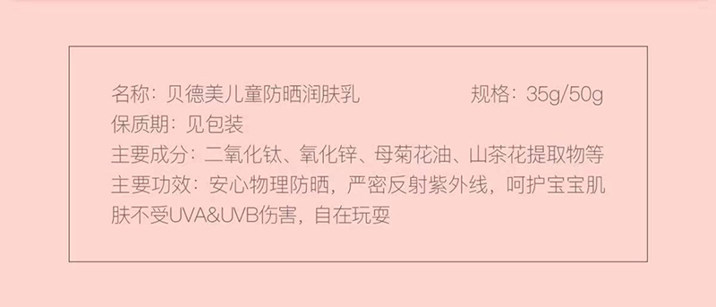商品名称:贝德美小阳伞儿童防晒润防晒霜肤乳35g