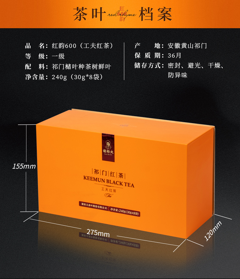 商品名称:谢裕大红韵600祁门红茶礼盒240g