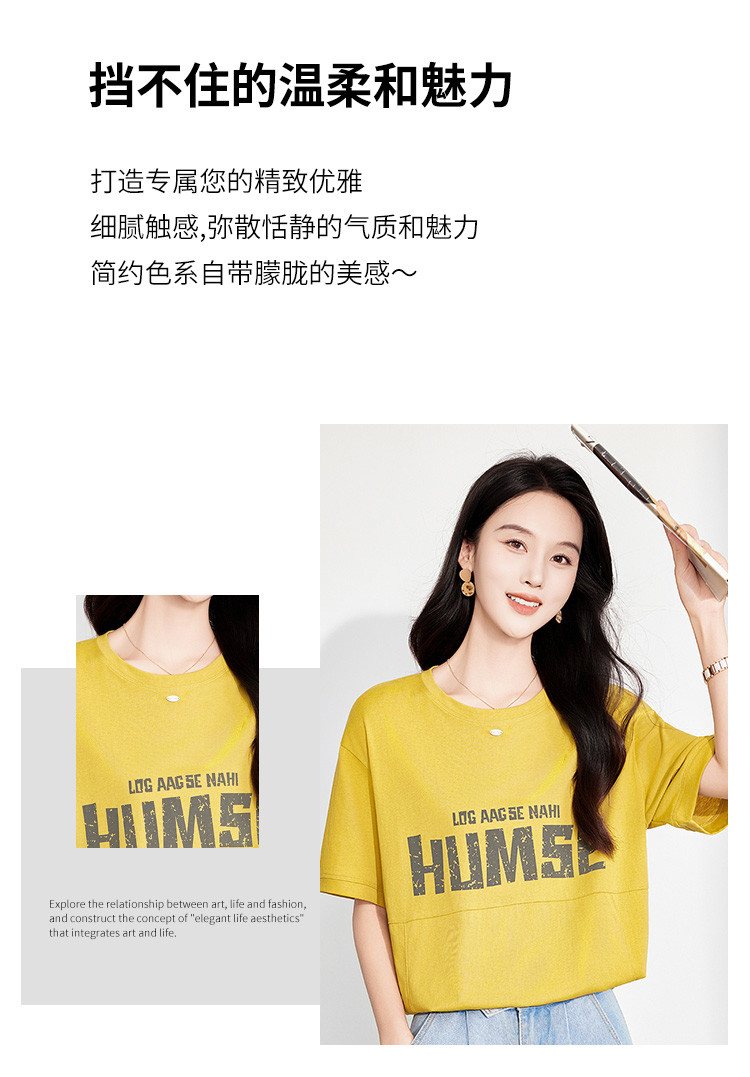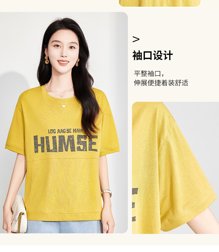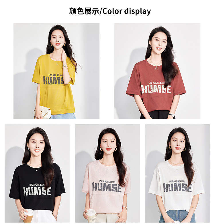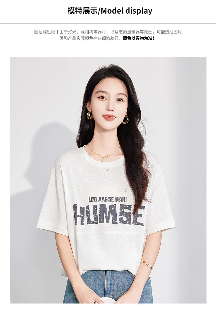商品名称:25夏季新款潮流街头风宽松字母T恤女式舒适套头休闲五分袖上衣 249567