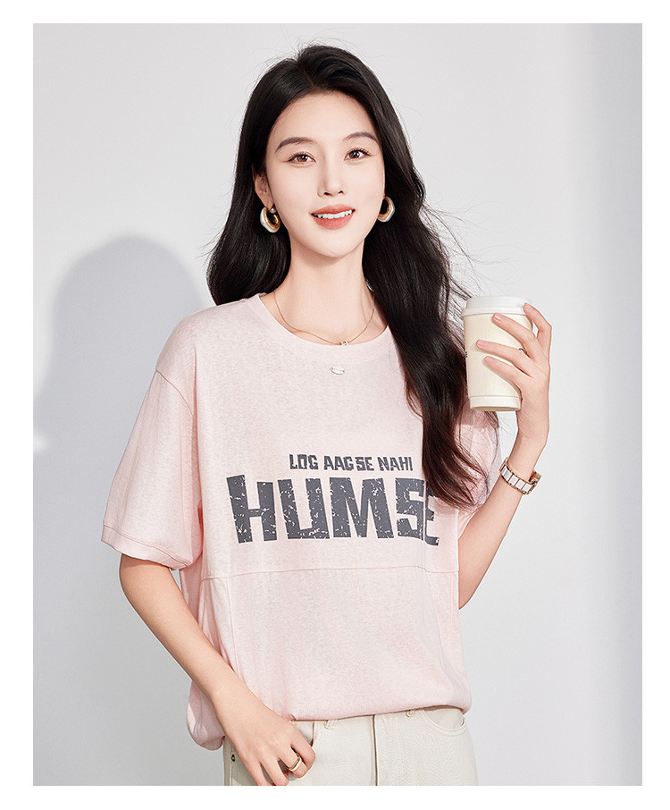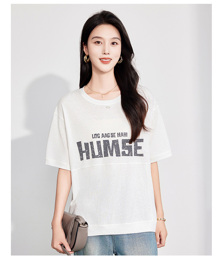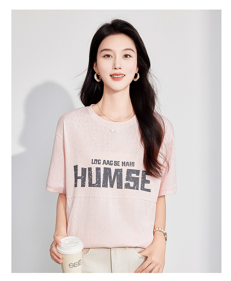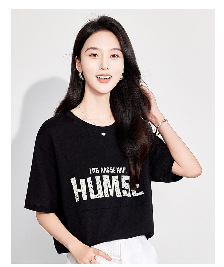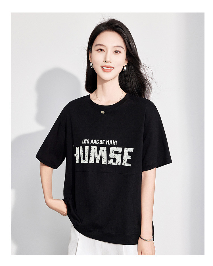 25夏季新款潮流街头风宽松字母T恤女式舒适套头休闲五分袖上衣 249567