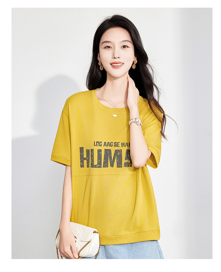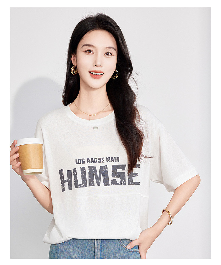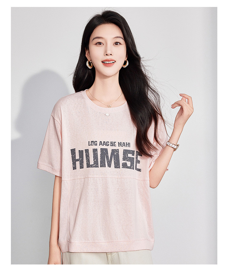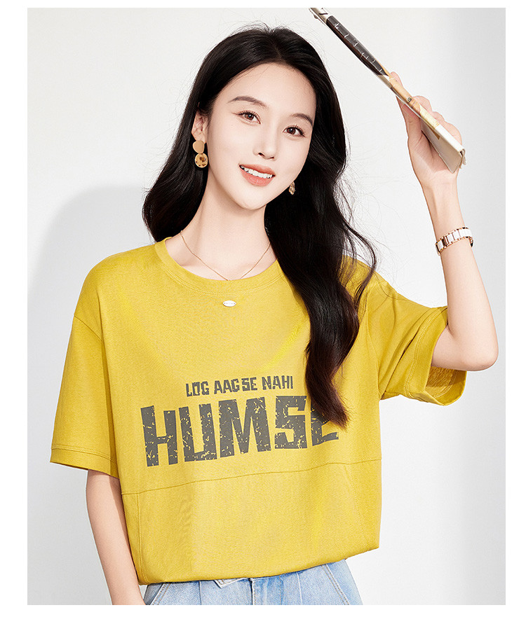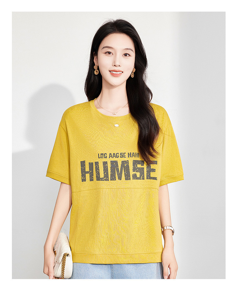25夏季新款潮流街头风宽松字母T恤女式舒适套头休闲五分袖上衣 249567