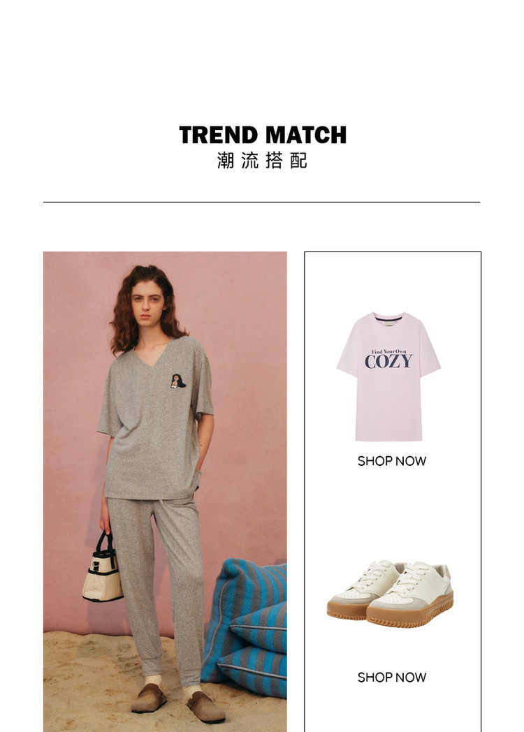 商品名称:小熊v领短袖宽松长裤家居服睡衣外穿套装 447297